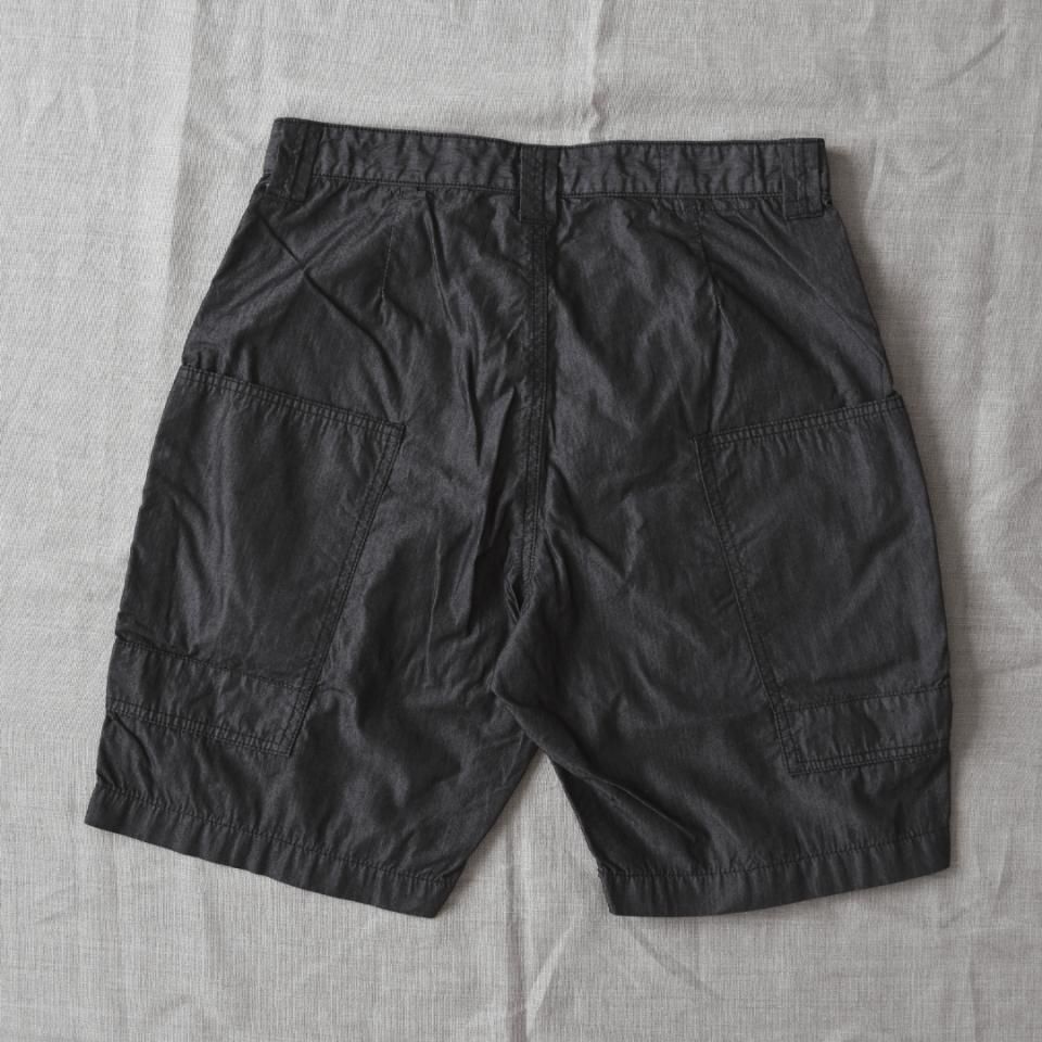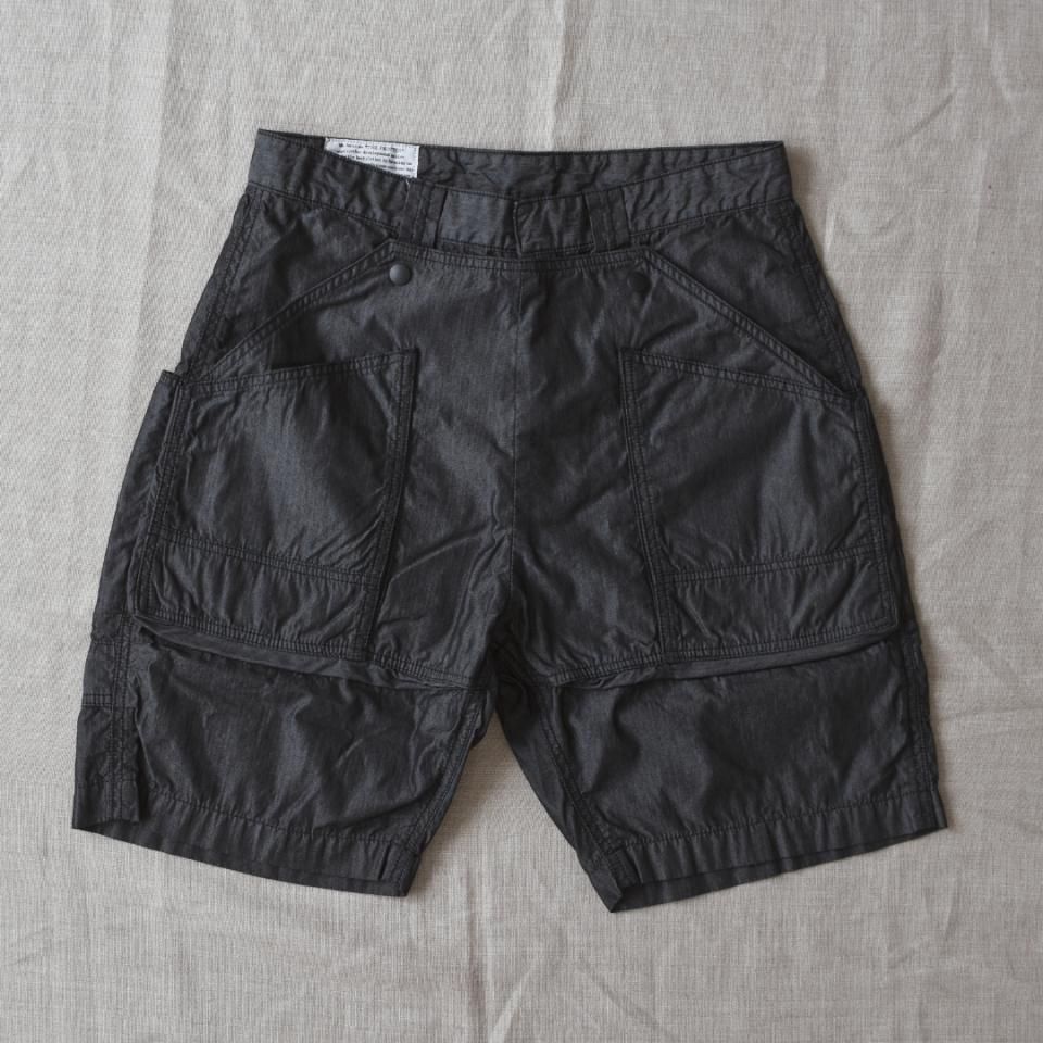 TOOLBOX JACKET同様にアーティスト達「59 rivoli squater」の一連のライフワークにスポットを当てたバックいらずのショート丈道具箱パンツ。TOOLBOX CROPPED の仕様と同じショート丈。フロントの大容量ポケットは上部2箇所のボタンで開閉式。サイドとアンダーのマチで収納力はもちろん、ものを入れたときのストレスを軽減させます。シーンに対応するための独特なディティールと、タフに使えるステッチワークを施した仕様は、実用性のある一点。素材はコットン78% ナイロン22% のシャンブレー。軽さと耐久性に優れるナイロン混の生地を採用。
