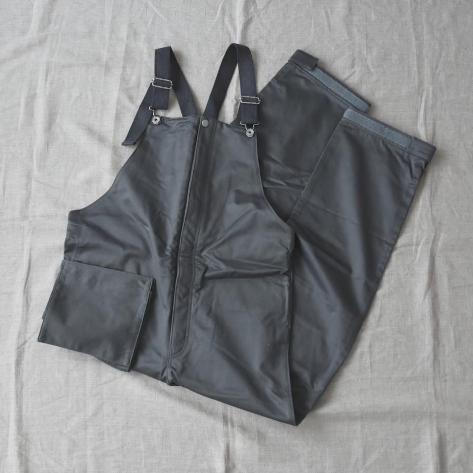 サスペンダーテープを腰に巻き、胸当てを前に倒してパンツスタイルとしても着用できます。取り外し式のツールポケット付き。膝は2重での補強と、アクションプリーツ、裾はベルクロで調節し絞ることによって動き易さをプラス。胸当て内側両サイドにハンドウォームポケットも付いています。