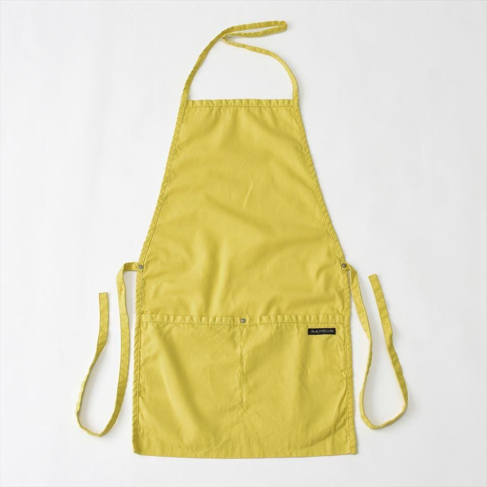 ヴィンテージのエプロンがデザインソースで、細身のシルエットが特徴的な縦長エプロン。中肉厚のシャツ生地のようなエプロンとしては比較的薄手の生地感。フロント下のポケットは容量が多く、様々な道具が収納可能です。ジャケットなどを羽織ってもかさばらず、気軽に着用できます。