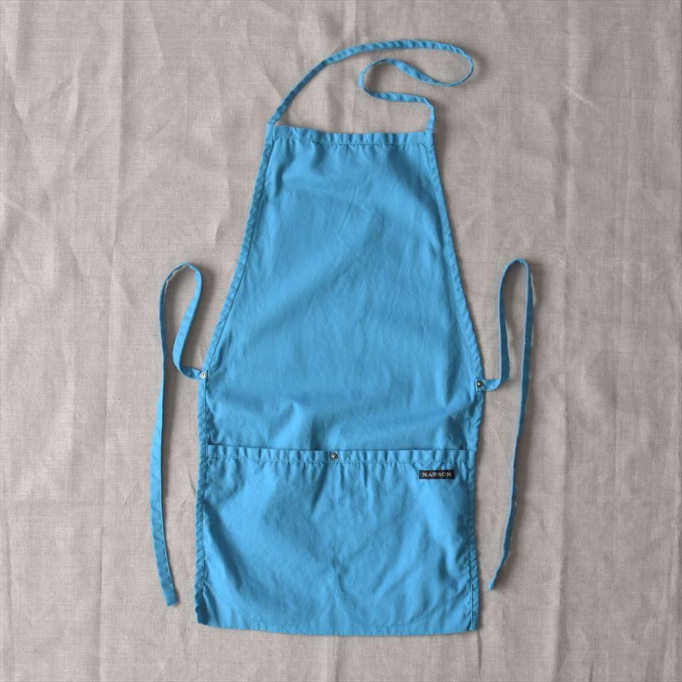 ヴィンテージのエプロンがデザインソースで、細身のシルエットが特徴的な縦長エプロン。中肉厚のシャツ生地のようなエプロンとしては比較的薄手の生地感。フロント下のポケットは容量が多く、様々な道具が収納可能です。ジャケットなどを羽織ってもかさばらず、気軽に着用できます。