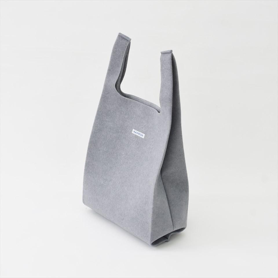 ペットボトルから100%リサイクルで作られたイタリア製フェルト「EuRElle(ヨーレル)」を使用したバッグ。しっかりとした厚みがあり強度にも優れる生地で、驚くほどに軽い仕上がり。たっぷりのマチを取った、お馴染みの形。