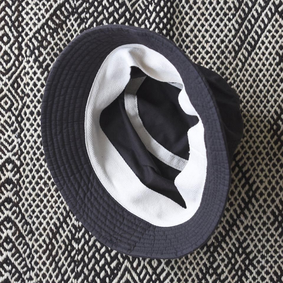 経年変化が素晴らしいネップバックツイルを採用。炎天下や汗まみれの作業での酷使と繰り返しを想定しクラシックなワークウエアのような縫製で仕立てています。独特なシワ/ムラ感や、ネップ(糸埃)によるヴィンテージ感溢れる帽子に仕上がっています。色味は真っ黒ではなくブラックよりも1トーン明るいオフブラックです。