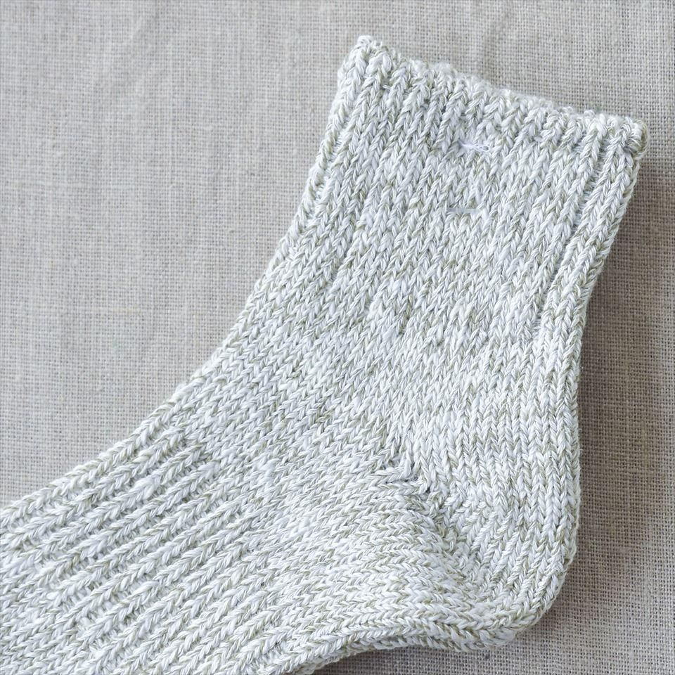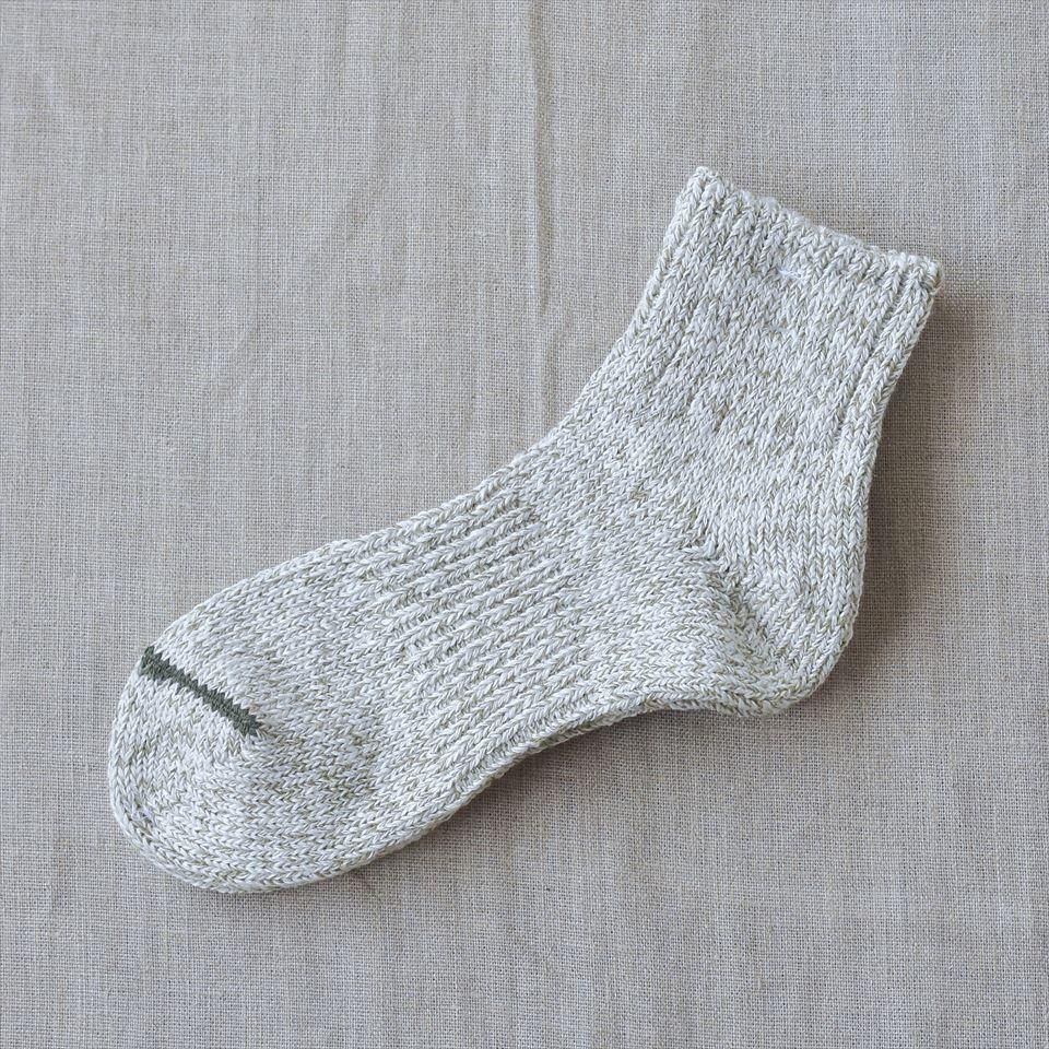 吸湿性と速乾性に富むコットン/ヘンプの靴下。明治から続く工場で丁寧に少量生産。ショート丈。