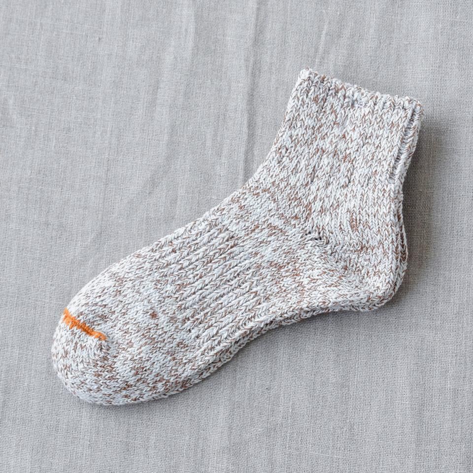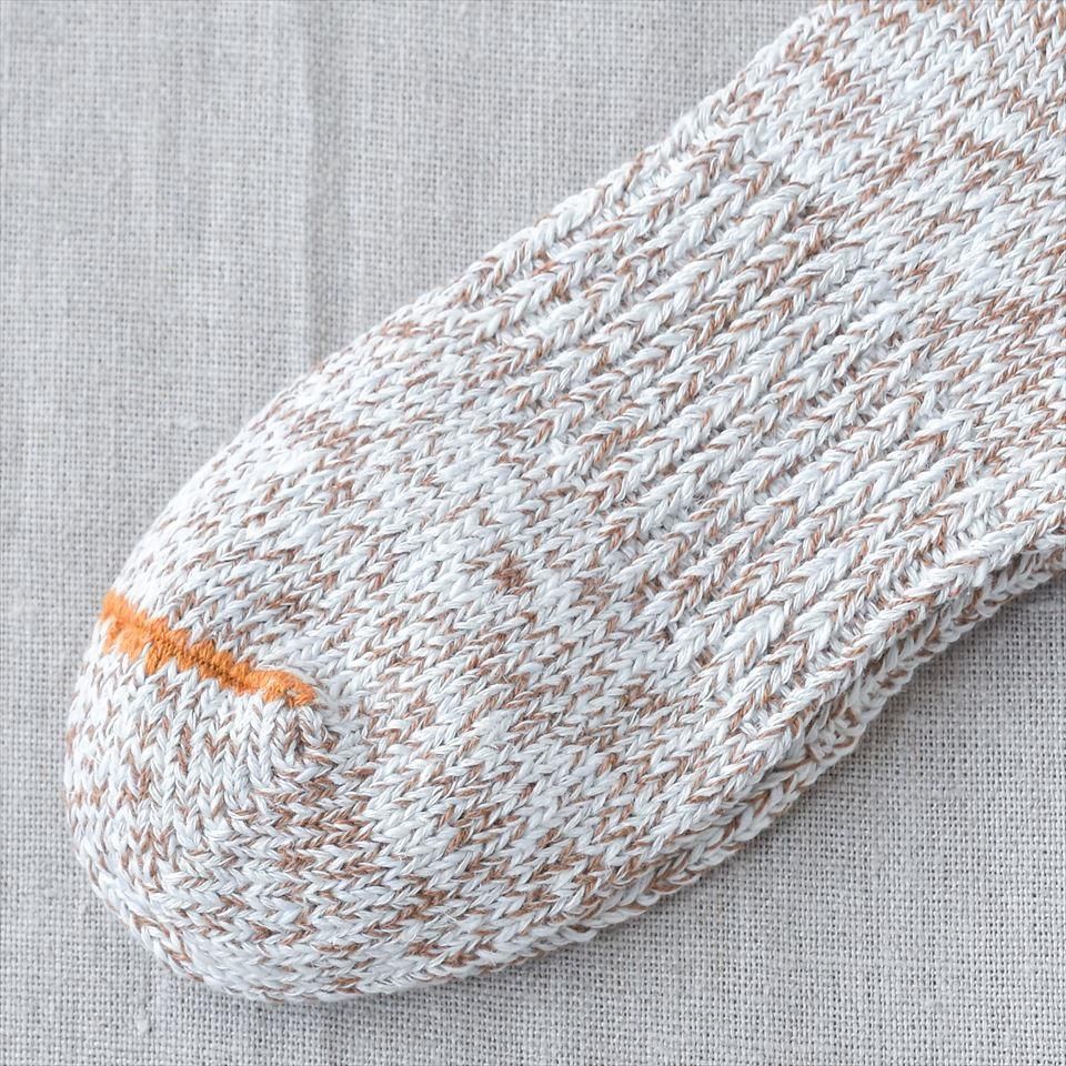 太めの糸で編み込まれた肉厚の生地はとても丈夫で蒸れにくく、締めつけすぎずズレにくいので長時間履いていても疲れにくい靴下です。土踏まずはリブ編みでフィット感があって履き心地抜群です。ブーツやスニーカー、サンダルなど靴を選ばず合わせやすいデザインです。耐久性がり履き心地も良く、アウトドアや作業用靴下としても最適な靴下です。