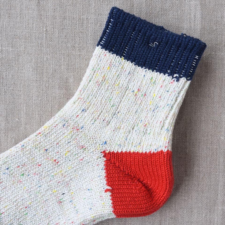 吸湿性と速乾性に富むコットン/ヘンプの靴下。明治から続く工場で丁寧に少量生産。カラーネップのショート丈。