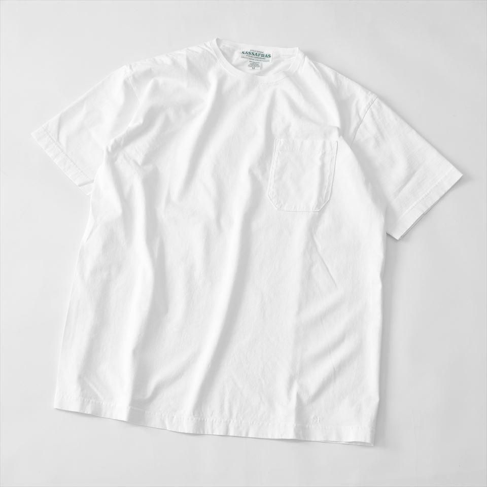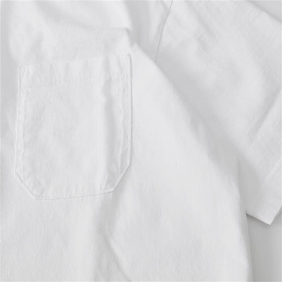 筒状に編み上げたサイドに縫製がない丸胴ボディに角を落とした胸ポケット付のポケTee。