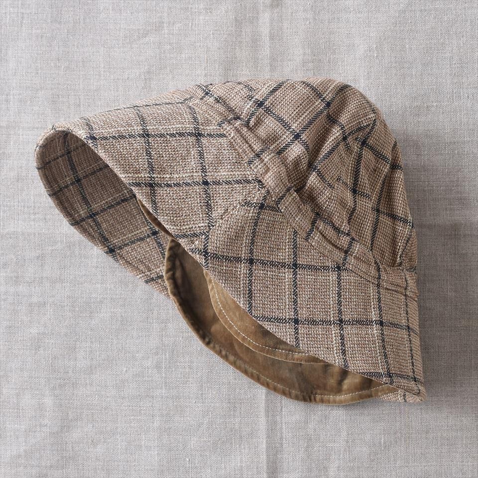 シャーロックハット(シャーロックホームズがかぶっているような帽子)をアレンジしたような、イヤーマフ(耳あて)付きのハット。綿麻素材のチェック柄でクラッシックな印象。長めのブリムはしっかり傾斜がついていて、フロントにはキャップのような芯入りブリム。耳あては内側にしまえるので、寒いときは出してしっかり防寒、いらないときはすっきり収納。ほんのりトラッドな雰囲気なのに、どこか遊び心がある一品です。
