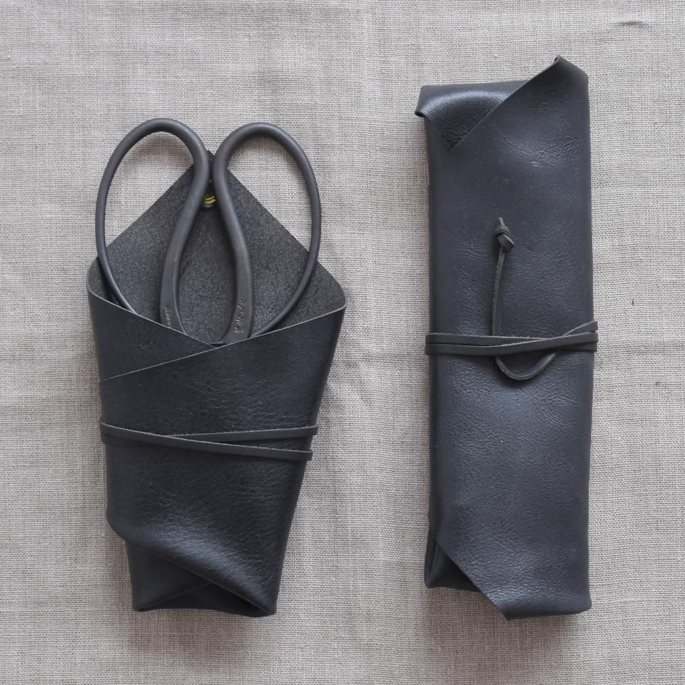 「包んで運ぶ、結んで贈る」シザーケース。お花の教室へ行くときに花鋏を鞄に忍ばせたり、大切な人に鋏を贈るときに、包んで結ぶロールケースです。日本では古くから伝統的に伝わる「包む」「結ぶ」の本質、ものを大切にし相手を尊重する意を表す所作を、鋏ケースとしてカタチにしました。風呂敷のように包むほか、鋏の出し入れが可能なシザーケースの2WAYでお使いいただけます。京都御所南の革工房Rimとのコラボレート制作。(※)Rimでの販売ございませんのでご注意ください。