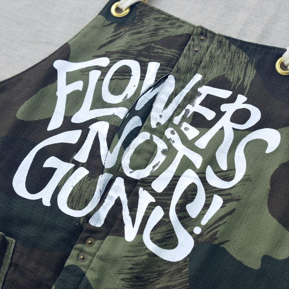 SUOLO(スオーロ)が反戦をテーマに掲げたメッセージブランド"FLOWERS NOT GUNS!(フラワーズノットガンズ!)"。2013年4月の当店移転リニューアルオープンイベントとしてスタート。その後、当店LIFETIMEも加わり、プロダクトの制作を通じて想いを送り届けています。