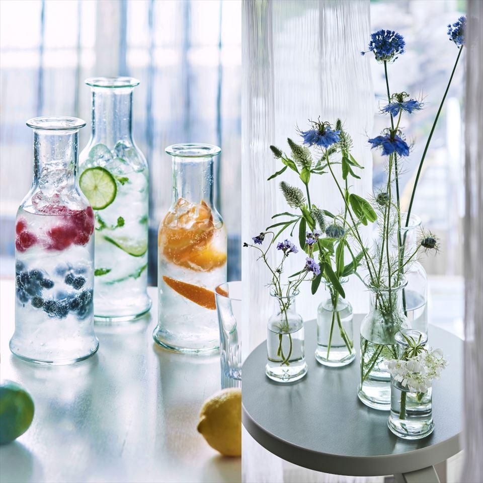 小さなボトルはストローを挿してドリンクボトルとしてもお勧め。大きなサイズはカラフェとしてサーバーとしてもお使いいただけます。また、厚みがあり底が広く安定感があるので、小さなお子様やペットがいるお家でも安心してお使いいただけます。