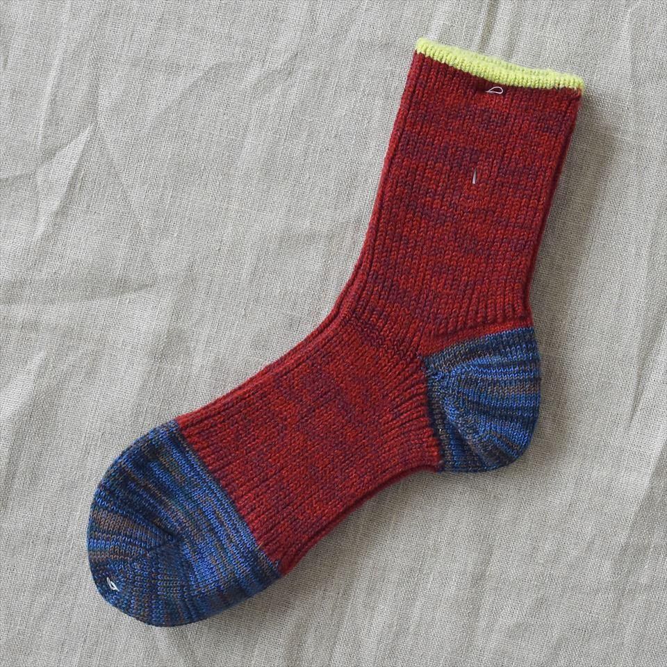 ウール混の暖かく丈夫な靴下。太めの糸で編み込まれた肉厚の生地はとても丈夫で蒸れにくく、締めつけすぎずズレにくいので長時間履いていても疲れにくい靴下です。ブーツやスニーカー、サンダルなど靴を選ばず合わせやすいデザインです。道具屋としての見解ですが、耐久性や履き心地など理に叶った作業用靴下としてもおすすめしています。