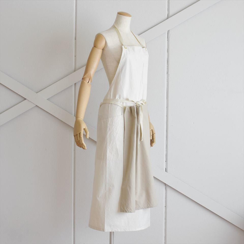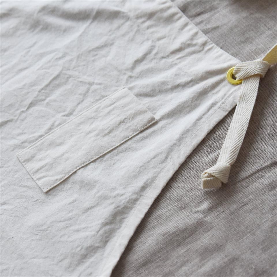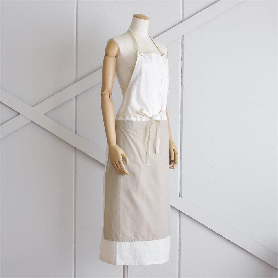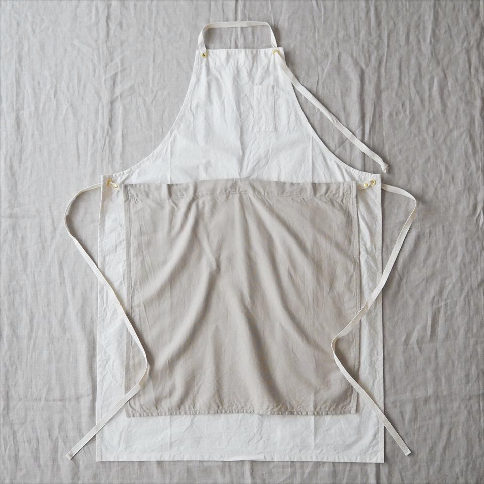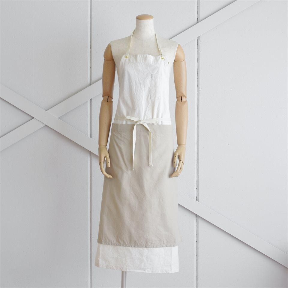 18〜19世紀のヨーロッパの民族衣装から着想を得てデザインされたエプロン。ロングエプロンに脱着可能な前掛けエプロンを重ねて使用できるワークエプロン。本体には馬布(ばふ)を、前掛けはコットンビエラ地を使用。前掛けが汚れた際にエプロンの替えがない時でも、前掛けだけを取り外して洗濯することも可能です。もちろん、本体も洗濯できます。