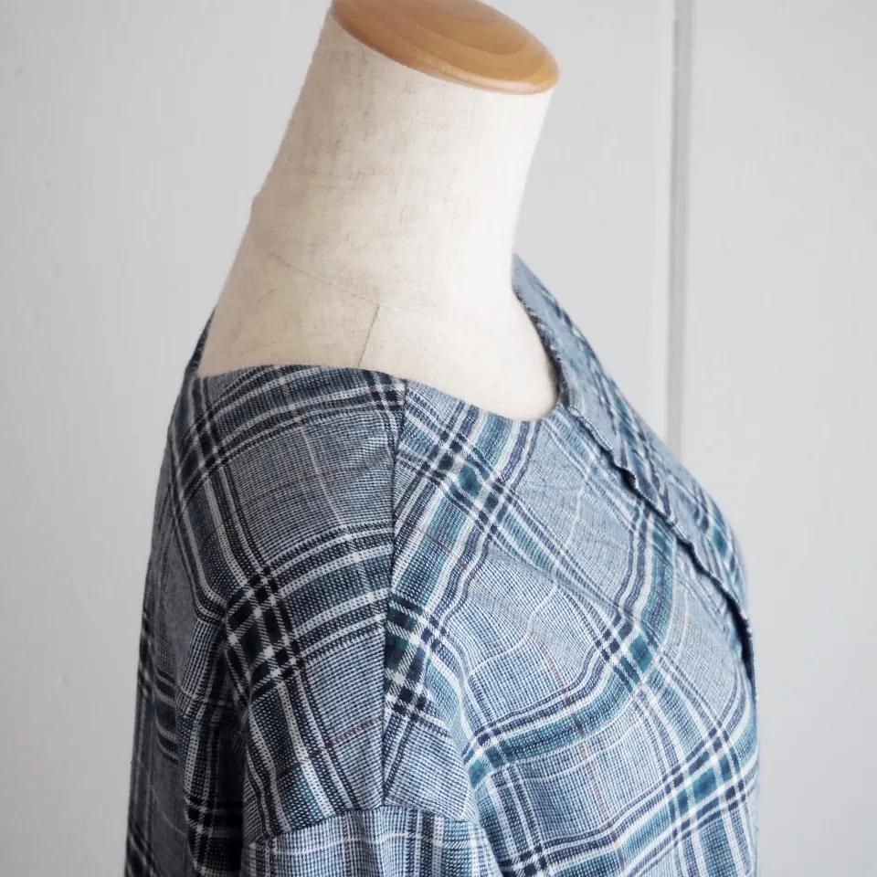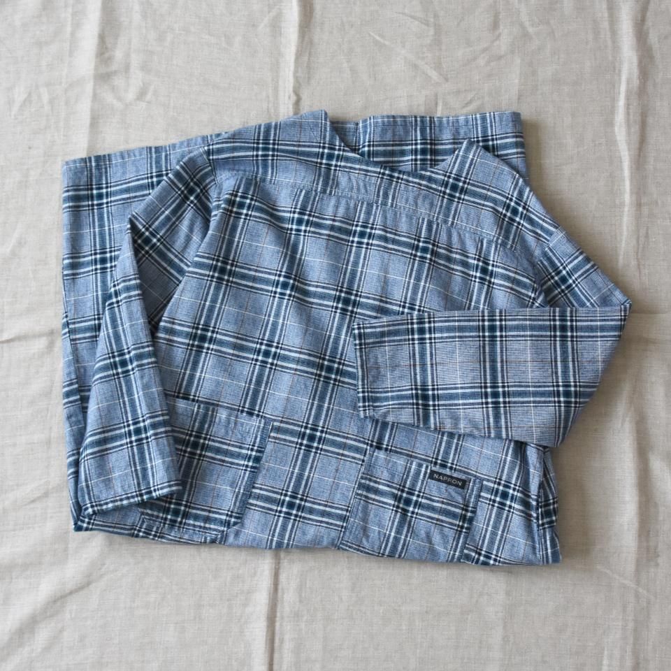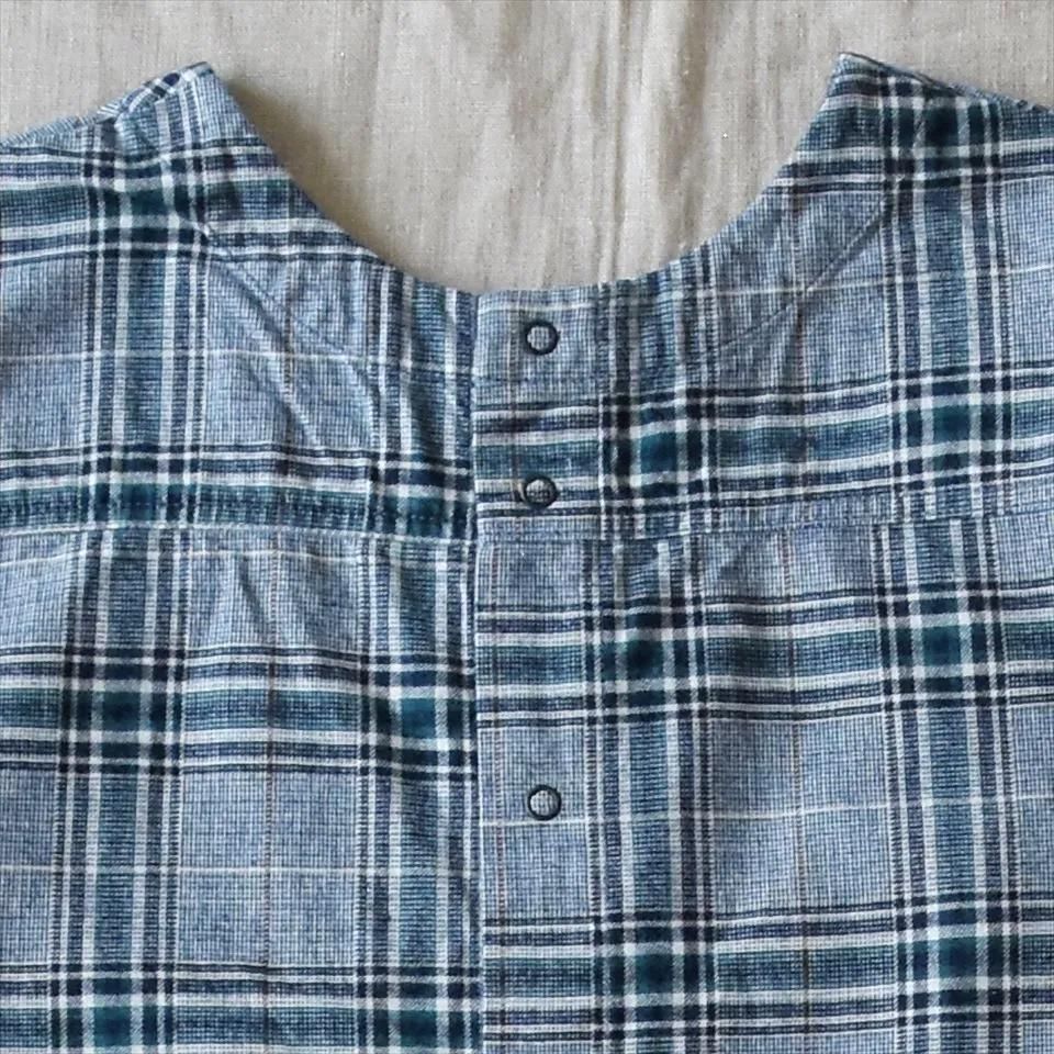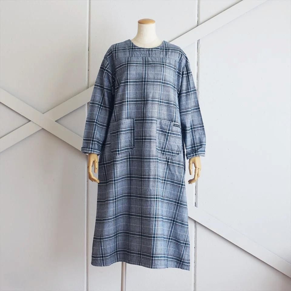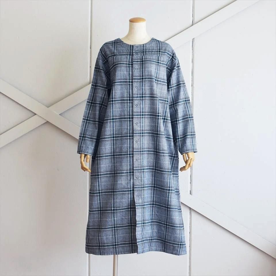 ドイツ軍のメディカルコートの形をアレンジして作られたロング丈スモック。ゆったりしたシルエットです。ポケット側を前に着るとワンピースのようになり、ボタン側を前に着るとロング丈のスナップカーディガンや羽織りコートのようにも着ることができる、前後リバーシブル。素材はコットンネル。冬の定番ネルシャツと同等の薄過ぎず分厚過ぎずの厚みです。