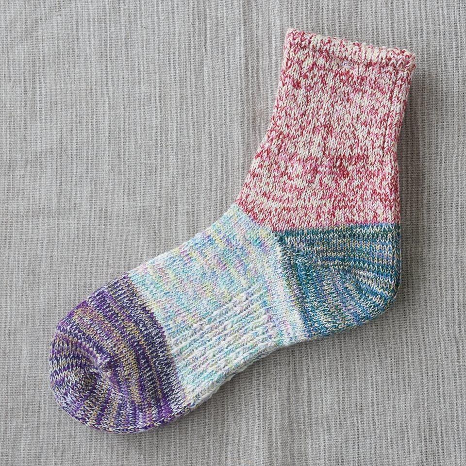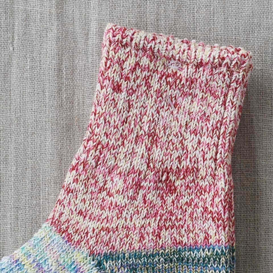 ヘンプ麻混合の太めの糸で編み込まれた肉厚のソックス。丈夫で蒸れにくく、締めつけすぎずズレにくいので長時間履いていても疲れにくい靴下。ブーツやスニーカー、サンダルなど靴を選ばず合わせやすいデザインです。長く履いても穴が開きにくい耐久性があり、アウトドアや作業用靴下として最適。オールシーズン対応の履き心地も良い靴下です。