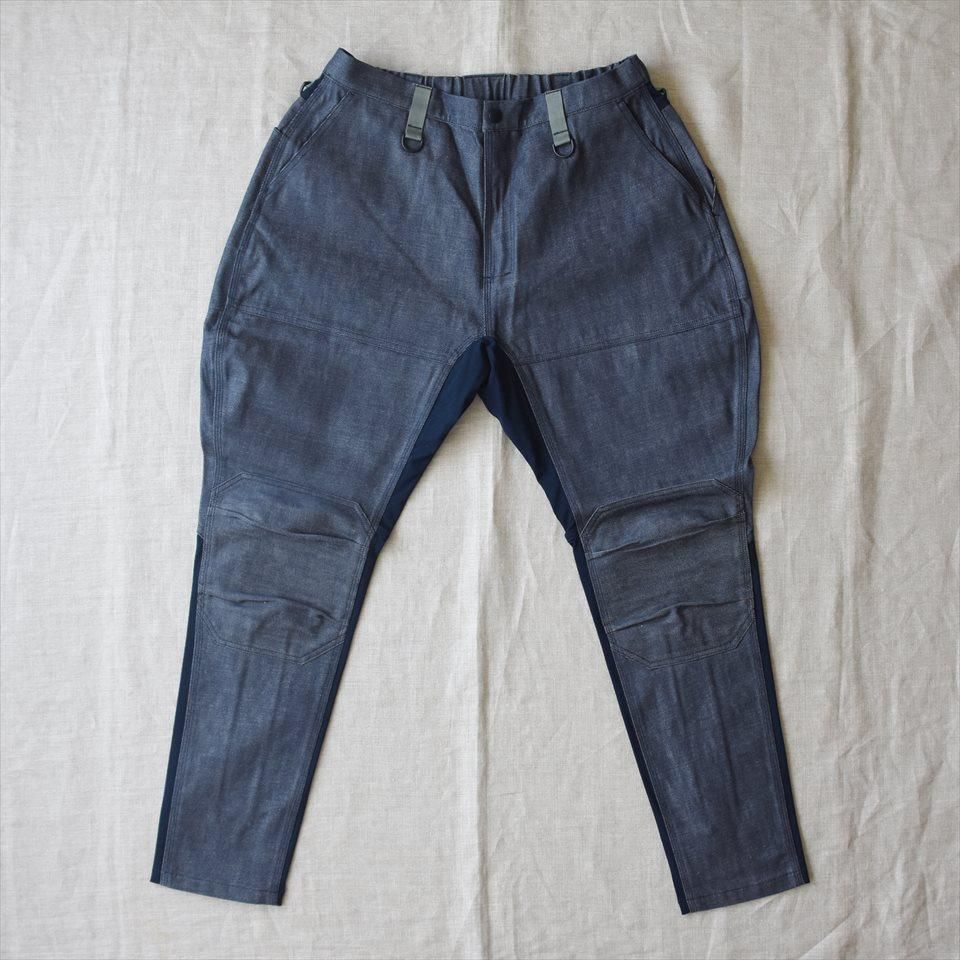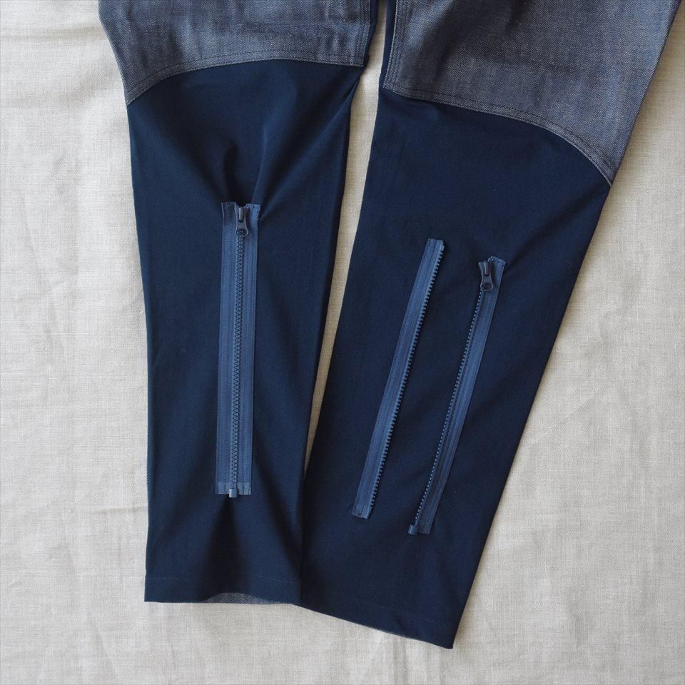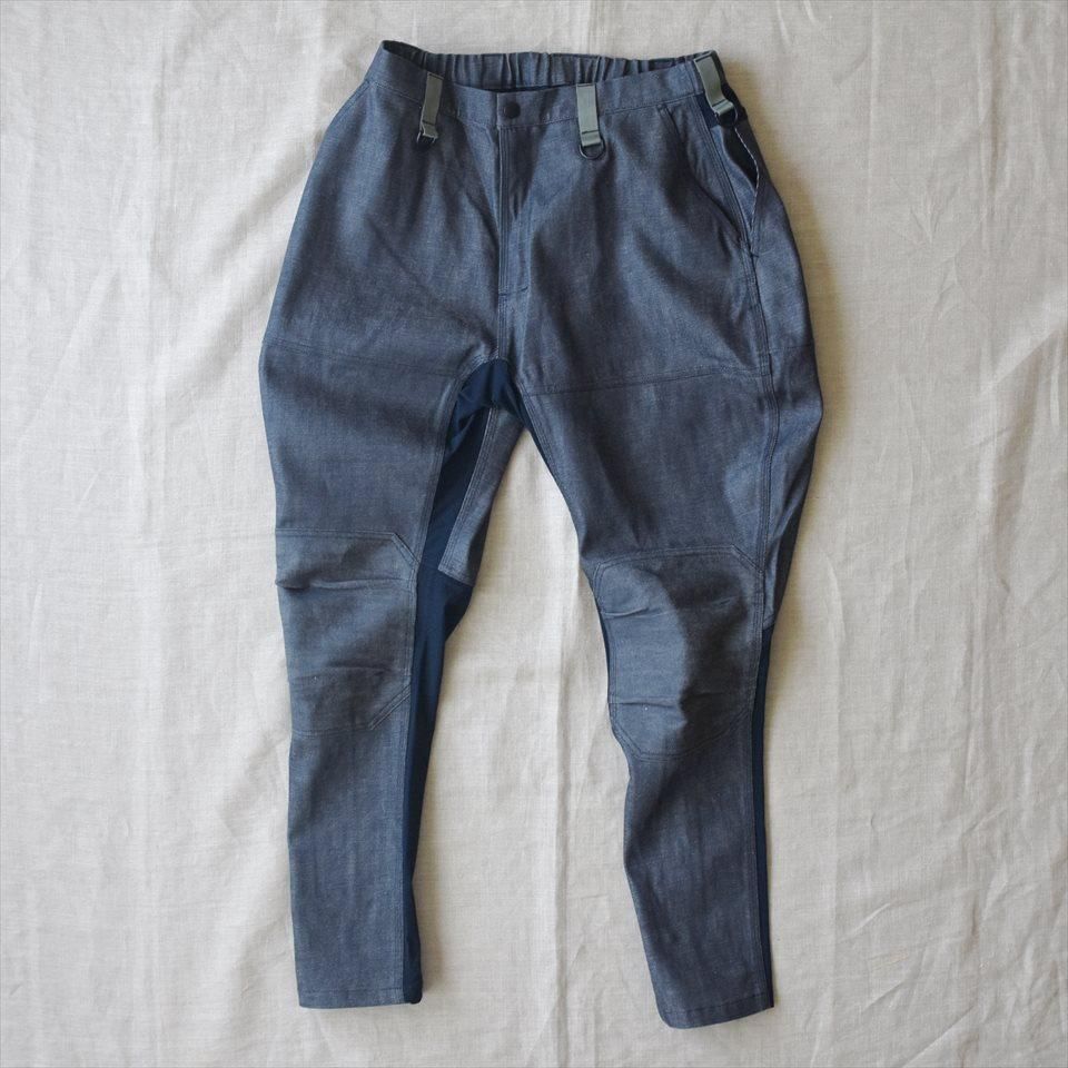 元ファッションスタイリスト(現在は山の人)岡部文彦氏が手掛けるブランドの代表作でもあり、クライミングパンツに見られるような股ガセット。パンク精神から?ふくらはぎのジップはパンク精神のボンテージスタイルは、機能性だけでなく見た目にもスタイリッシュに仕上がっています。
