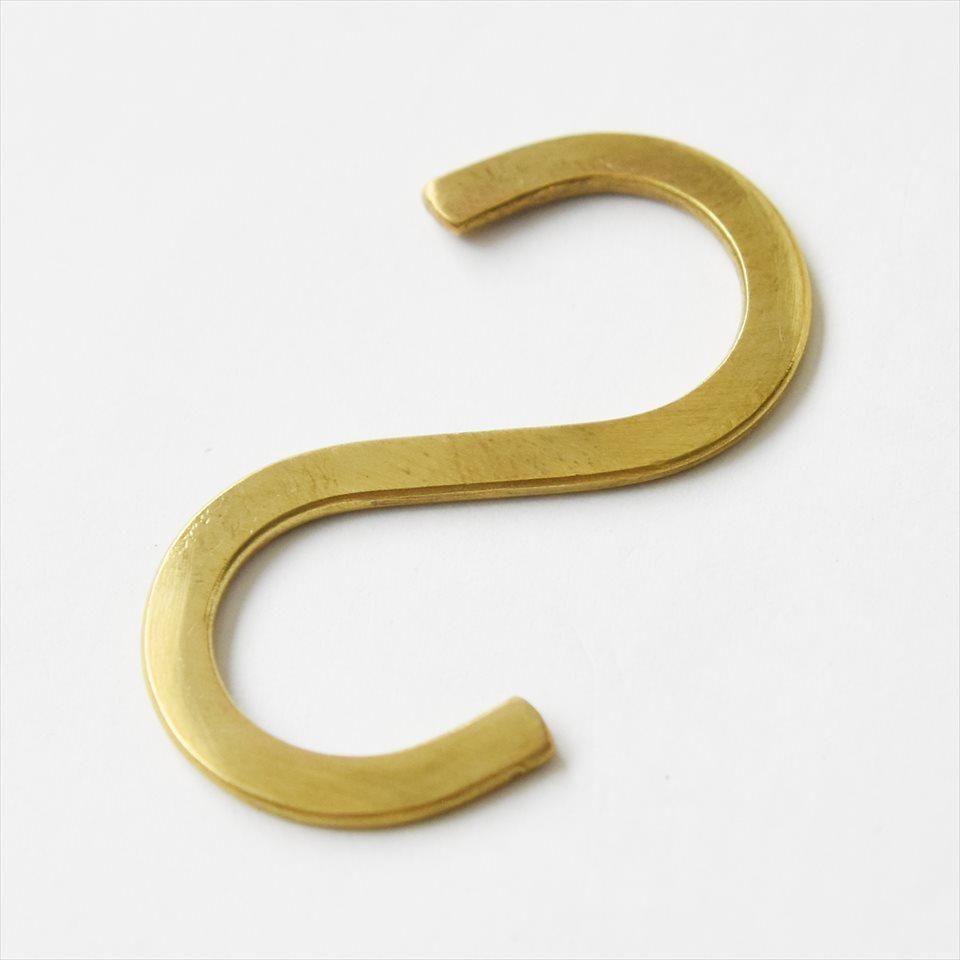 暮らしの様々なシーンで役立つS字フック。真鍮は空気中の成分や皮脂と反応して変色してきます。五円玉の感じです。経年変色は真鍮の魅力ではありますが、ピカピカを好まれる場合は、使用後に柔らかい布で汗や汚れを拭き取ってから保管してください。くすみが気になる場合は、重曹で磨くと綺麗になります。
