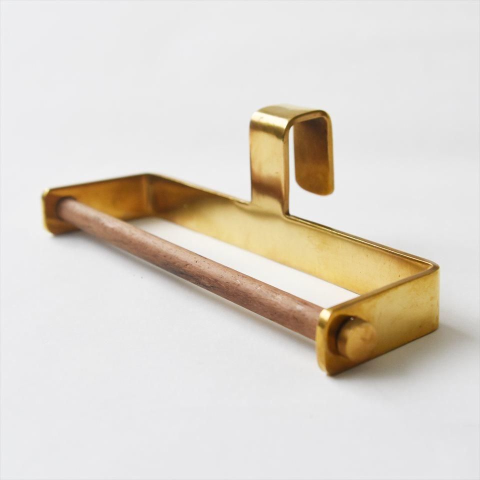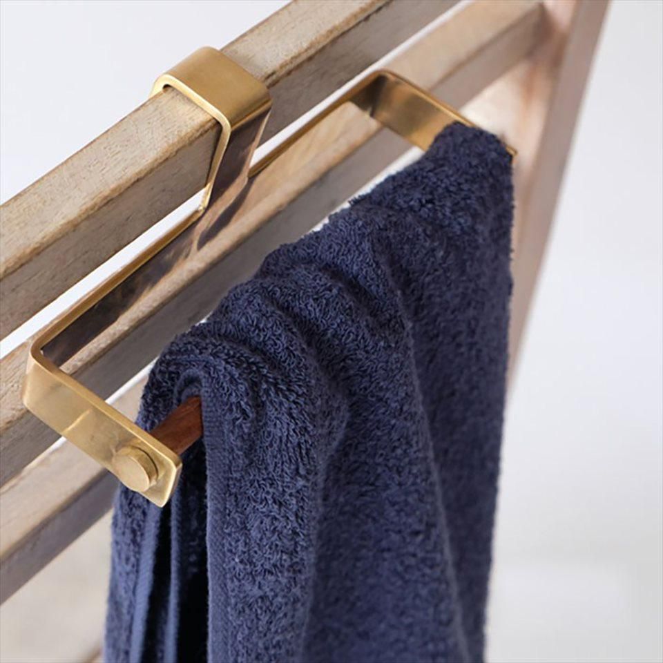 ブラスとシーシャムウッド(インディアンローズウッド)のバーを組み合わせたタオルハンガーです。キッチン周りの扉や引き出しに差し込むだけの簡単取り付けで、タオルや布巾をコンパクトに収納出来ます。