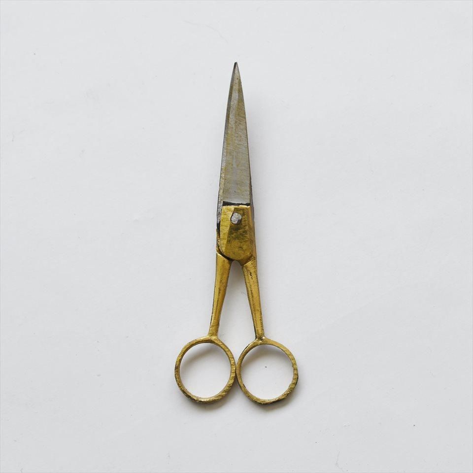 インドでひとつひとつハンドメイドしたはさみ。 真鍮と鉄の組み合わせがアンティークのような味わい深い風合いです。クラフトハサミとして、糸や紙を切るのに適しています。実際に試したところ機能的にも優れていて、薄紙やティッシュペーパーも綺麗にしかも驚くほどに鋭利な切れ味です。