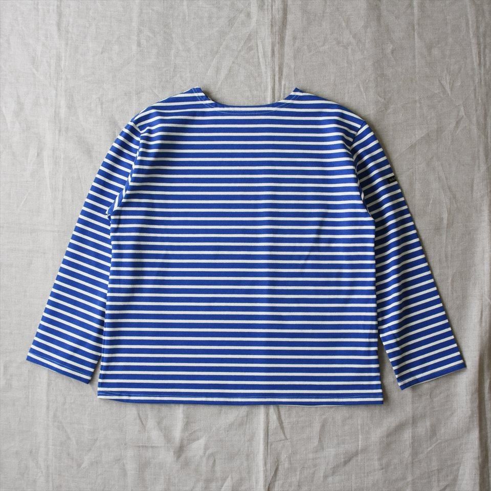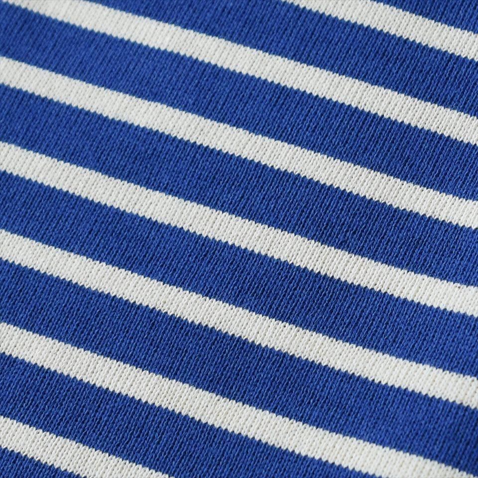中肉厚で目かしっかりと詰まったコシのある天竺のバスクシャツ。ボートネックのボーダーは、ワードローブに必須の大定番。サラッとした肌触りで通気性が良く、軽いのが特徴です。長袖 Tシャツよりもしっかりとした肉感のある生地ですが、分厚過ぎず春に一枚で快適に過ごせる程度のオールシーズン着用できる生地感。