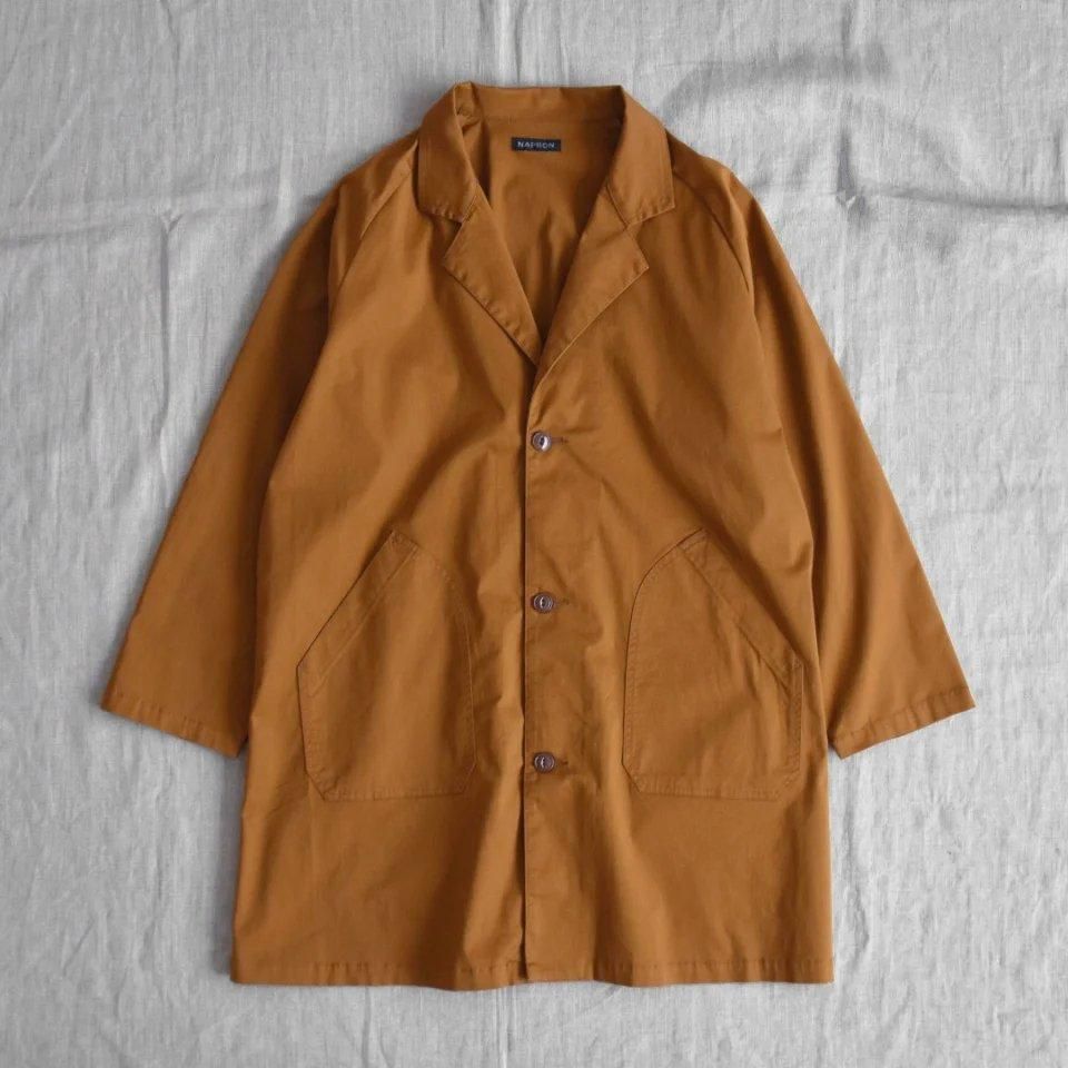 春や秋口にちょうどいい薄手のワークコート。ジャケットやカバーオールより少し長めのミディアム丈で、快適に長時間作業ができるやや薄手の生地で丈夫な仕立てで作られています。ラグランスリーブを採用しているため、肩周りの動きがスムーズで、作業時の快適さが向上しています。身幅が広めなので、さまざまなコーディネートに合わせやすいサイズ感になっています。ユニセックスデザインで性別年齢問わず、ワークウェアやカジュアルなハーフコートとしても幅広く活躍する一着です。