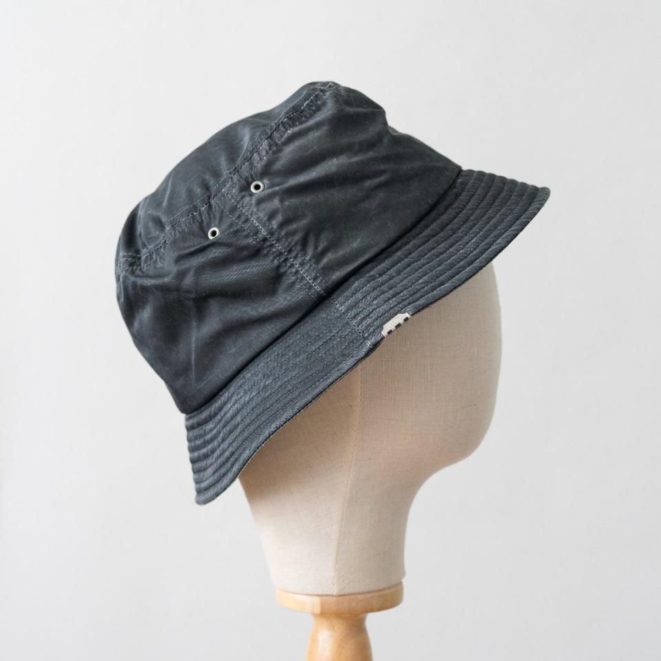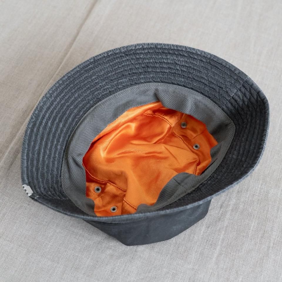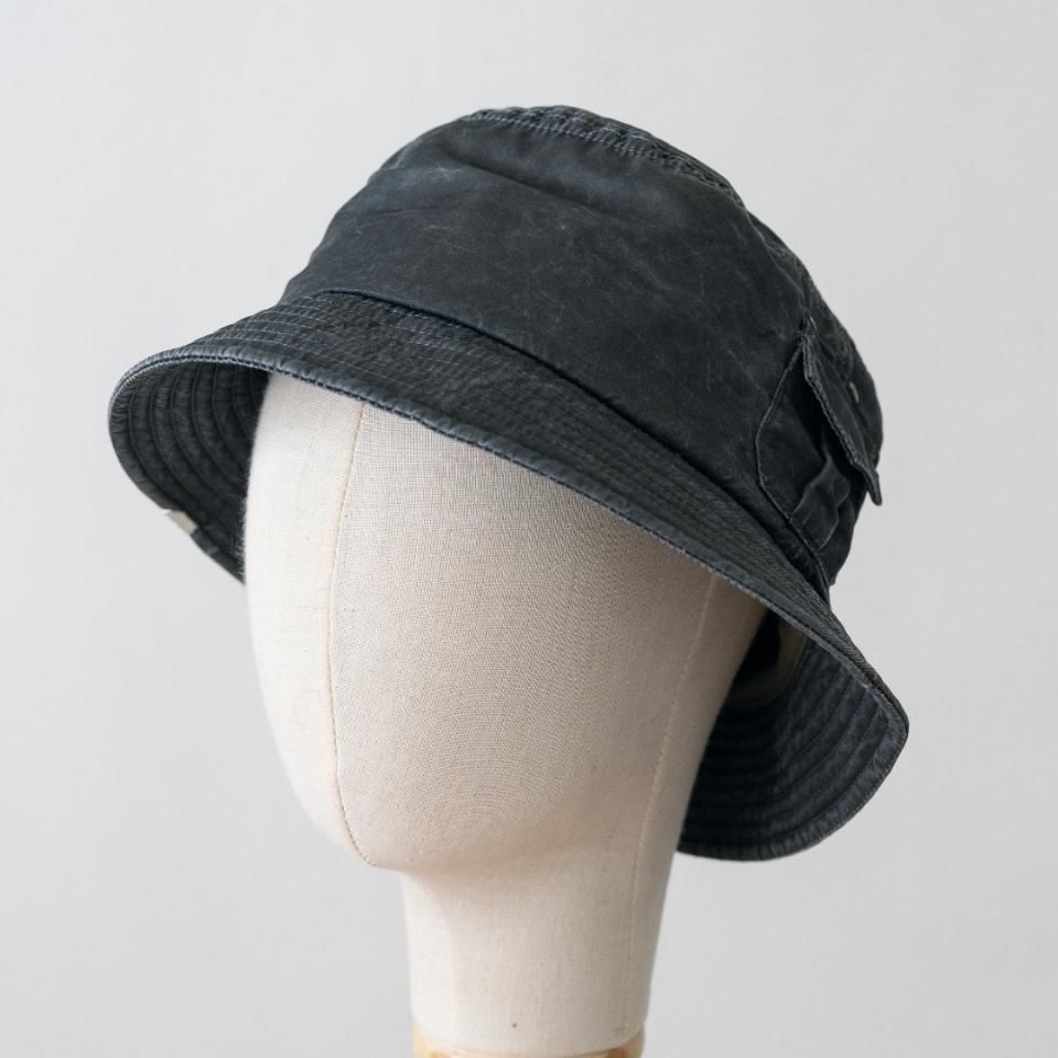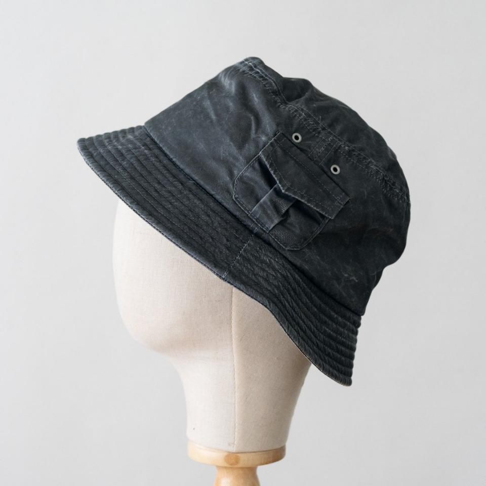 サイドに小さなコンパクトポケットが付いたバケットハット。2サイズ展開。バケットハットです。素材には、MA-1ジャケットで使われていたナイロンツイル生地を採用。その上に顔料コーティングを施し、ヴィンテージ感のある風合いを再現しています。ナイロン素材でありながら、使い込むほどに色が徐々に落ち、経年変化を楽しめるのが特徴です。また、手洗いが可能なので、汗をかいた際は次のケアをおすすめします。汗をかいた場合は手洗いしていただくか、よく絞ったタオルでしっかりと汗をふき取り、完全に乾かしてください。長く使い続けることで、より味わい深い表情が楽しめるハットです。