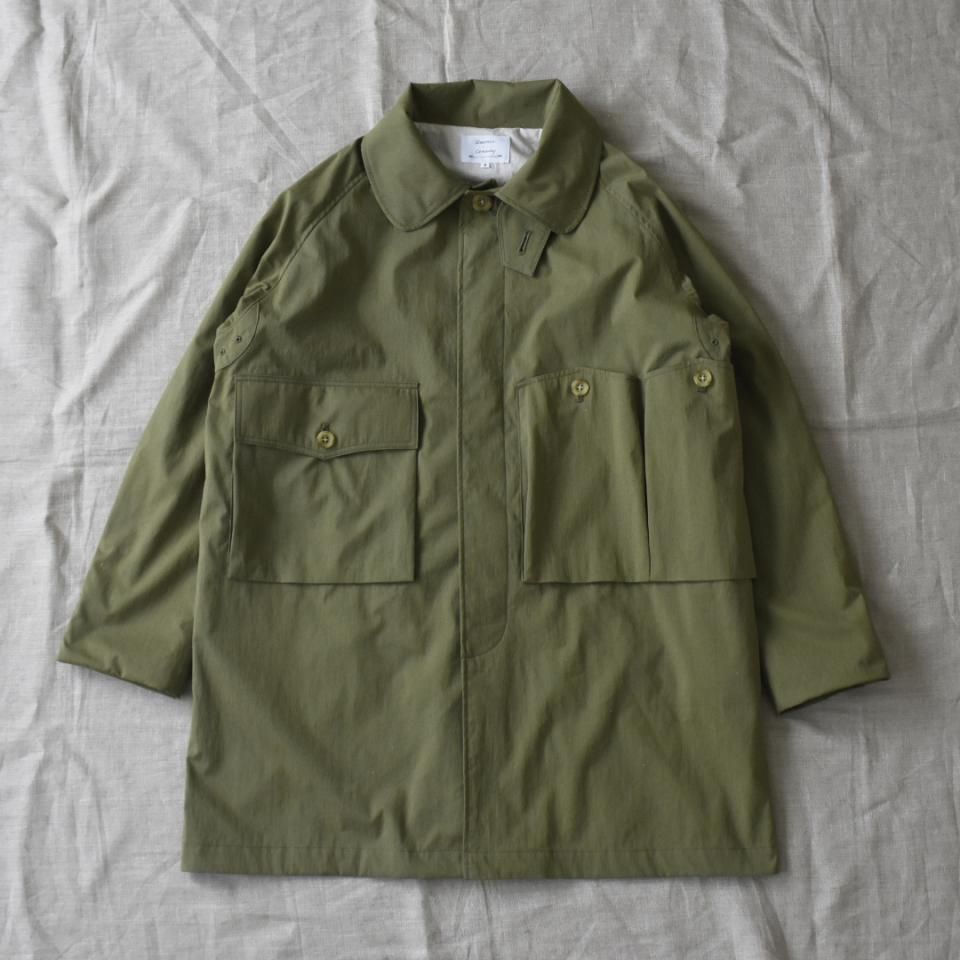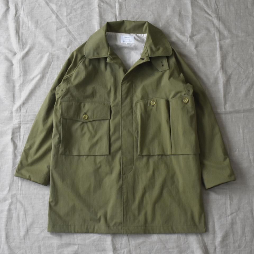 「River Runs」シリーズの定番モデル、River Runs Overが登場。今回は、軍への支給を背景にしたストーリー(ページ後半のHiStory参照)を感じられる、落ち着いたミリタリーカラーのコットン/ナイロン素材で仕上げました。軽やかで上質な風合いのコットンナイロンは、秋から春まで長いシーズン活躍すること間違いなし。ミリタリーカラーが映える、定番コートとしておすすめです。
