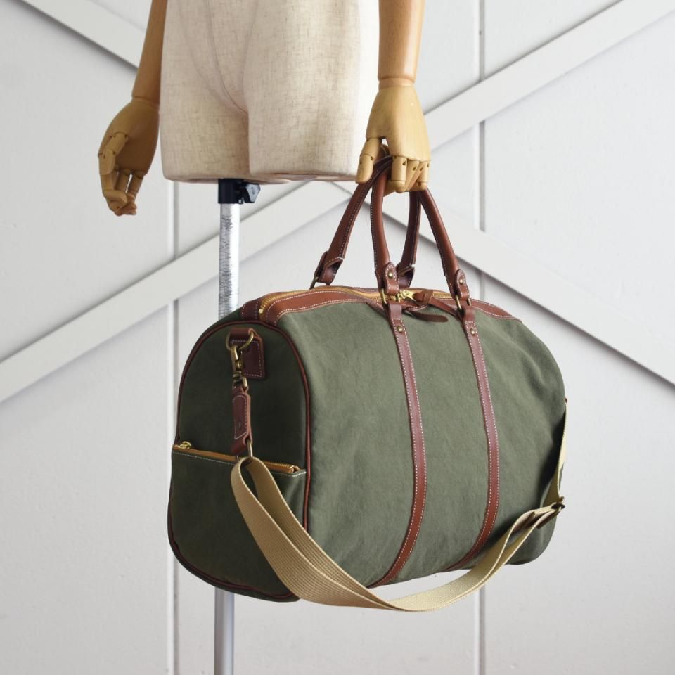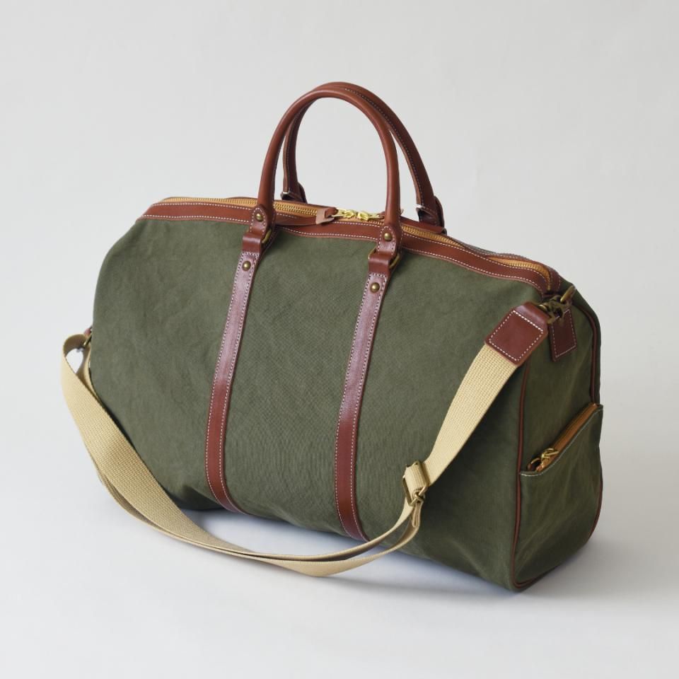 上質な栃木レザーは艶が増し、USミリタリーキャンバスを日本で染めた生地は、使うほどにアタリが出て、生地も少しずつ柔らかくなり、ヴィンテージの雰囲気に育ちます。新品にして使い古したような質感ですが、さらに10年後が楽しみになる革と帆布のコンビネーション。要所の真鍮色の金具がアクセントとなり、トラッドな香り漂うリラックスした大人の佇まいです。