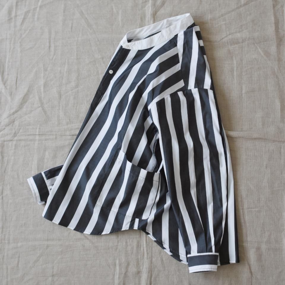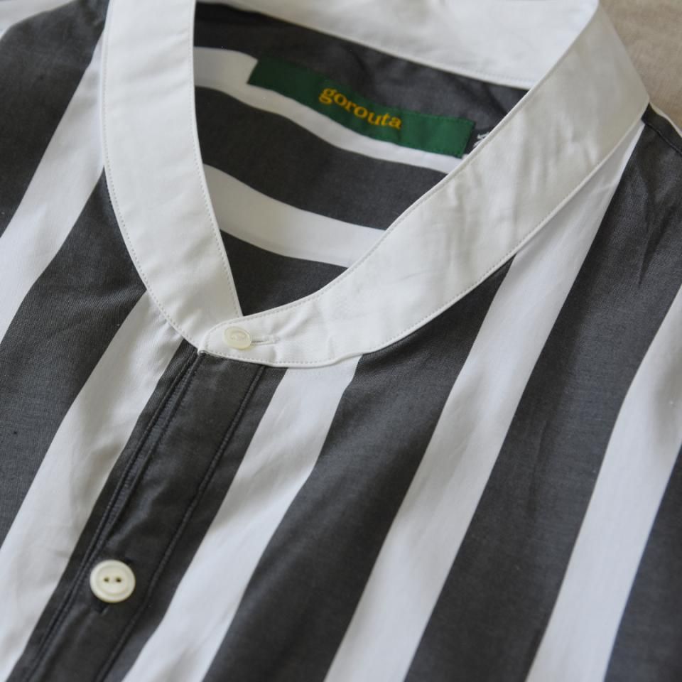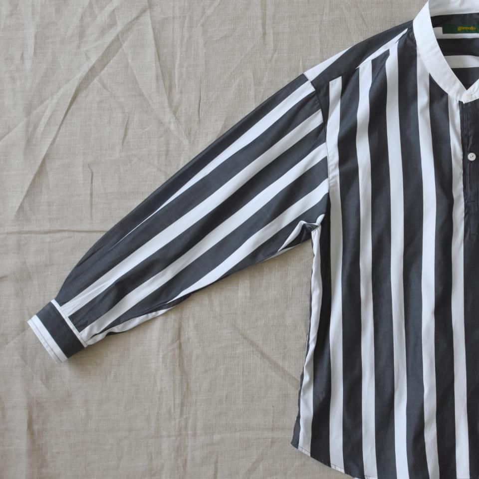 上質な超長綿を使用し、襟は首に沿う様なヘンリーネック風のカッティングのスタンドカラーのプルオーバーシャツ。左腰部分にパッチポケットがつきます。