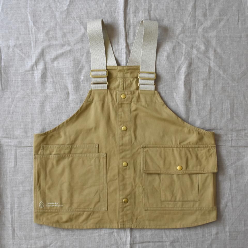 普段の居場所(LAND)やキャンプなどの非日常(BASE CAMP)で役立ち、少しのアクセントを与えられる道具を作っているブランド、LAND & B.C.(ランド&ビーシー)。琵琶湖が見渡せる自然豊かな比良山系の麓で暮らし、ガーデニングやDIY、薪割りなど日常でも作業時や、キャンプなどの「外暮らし」に焦点をあてた、エプロンなどのファブリックアイテムを制作しています。