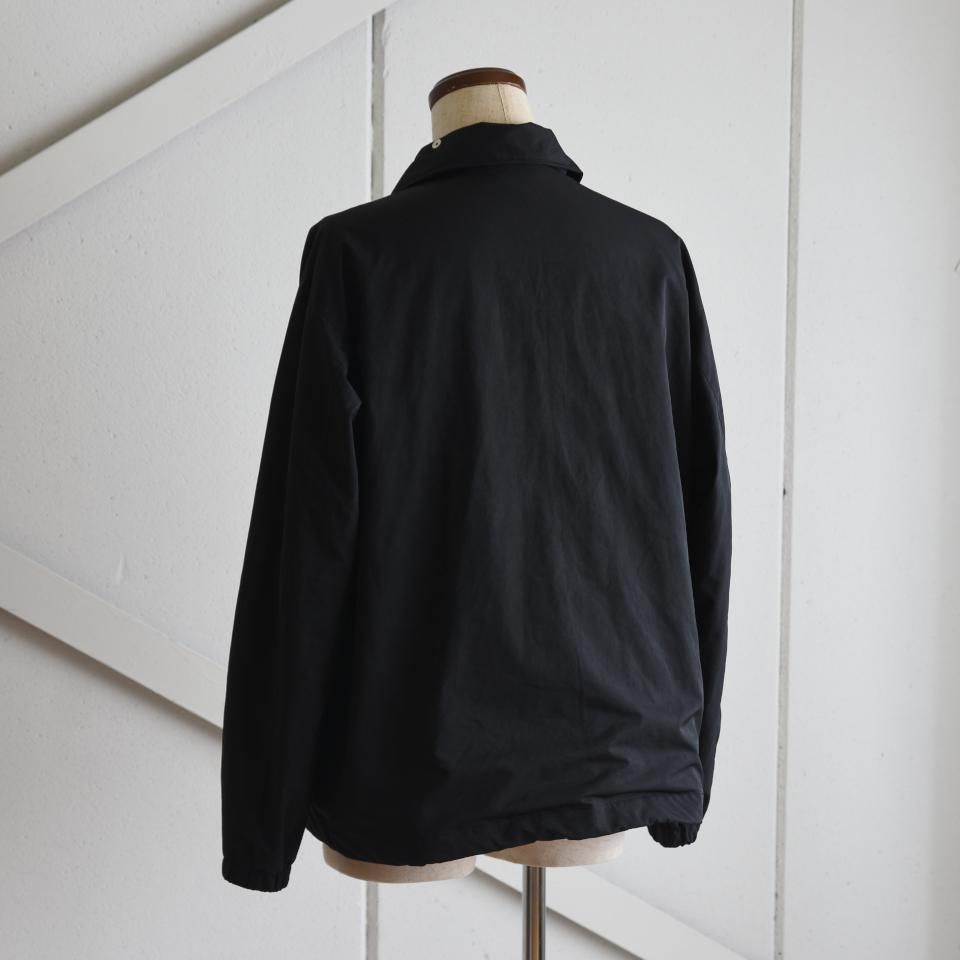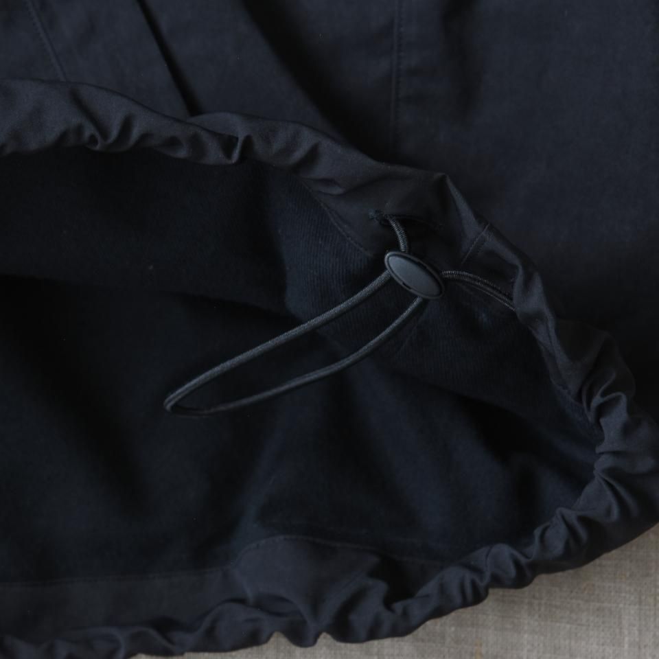 ふわっと柔らかく軽量で、上品な雰囲気のウィンドスリップブルゾン。首元には防寒性を高めるチンウォーマーを装備(不使用時は襟裏に収納可能)。腰にはドットボタン付きの玉淵ポケット、裾にはアジャスタースピンドルを搭載し、着丈やシルエットの調整が可能です。袖は動きやすい前振りの2枚袖仕様で、全体的に細身でシャープなシルエットに仕上がっています。また、裾のスピンドルを絞ることでシルエットの変化を楽しめます。金属製スナップボタンを採用。実用性とデザイン性を両立した、季節を問わず活躍する一着です。
