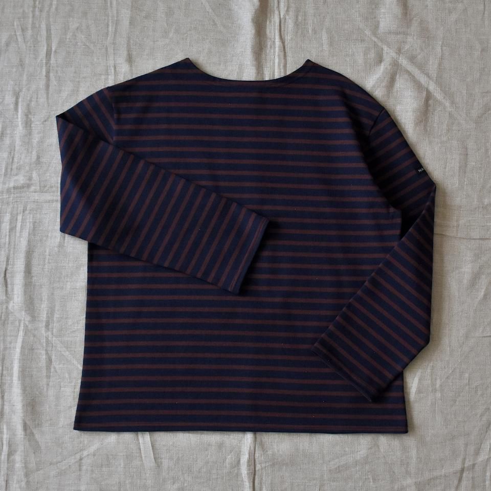 中肉厚で目かしっかりと詰まったコシのある天竺のバスクシャツ。ボートネックのボーダーは、ワードローブに必須の大定番。サラッとした肌触りで通気性が良く、軽いのが特徴です。長袖 Tシャツよりもしっかりとした肉感のある生地ですが、分厚過ぎず春に一枚で快適に過ごせる程度のオールシーズン着用できる生地感。