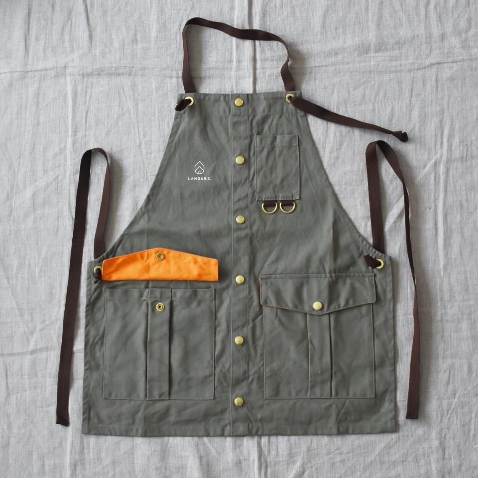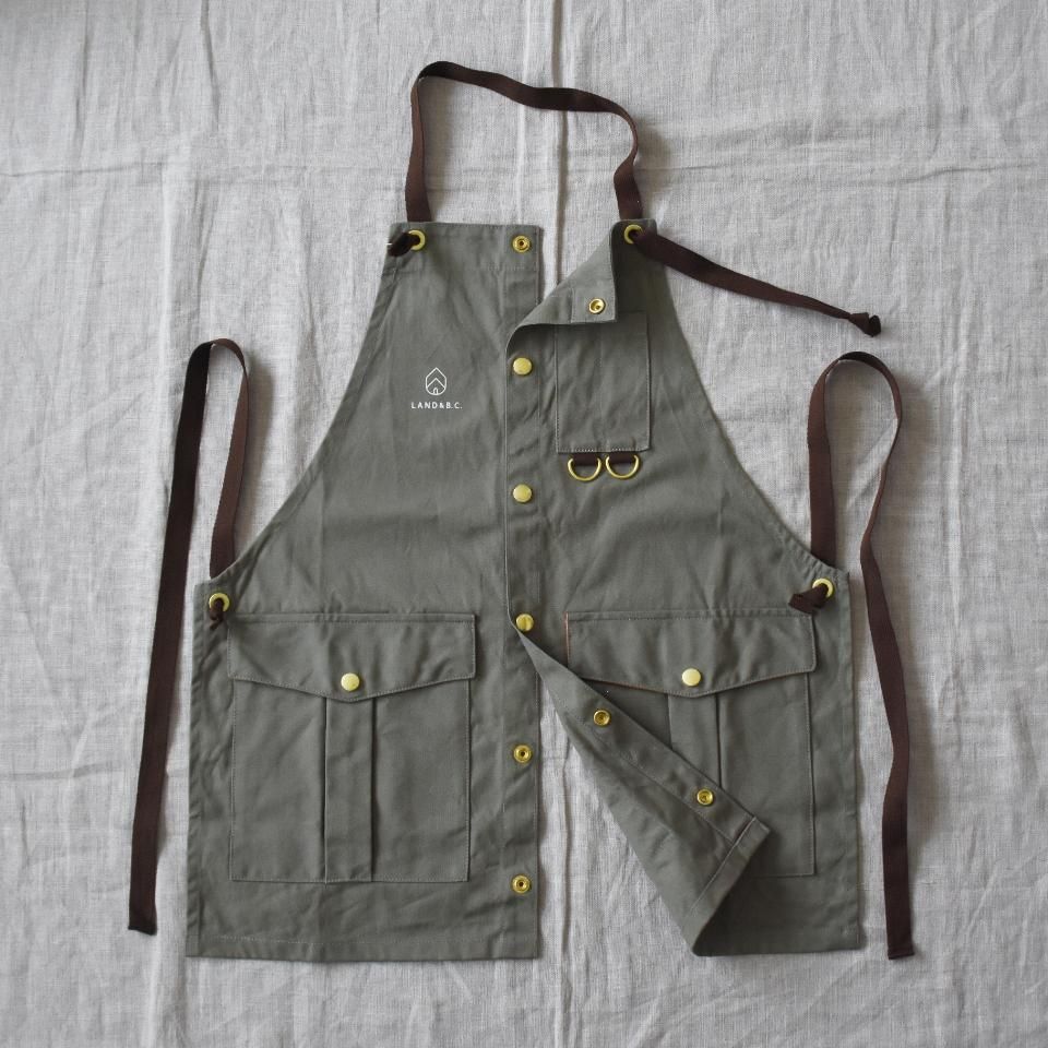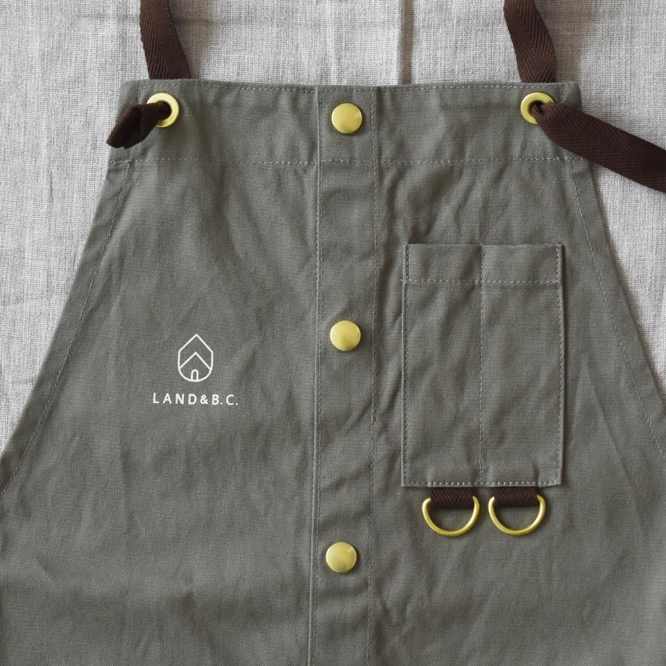 普段の居場所(LAND)やキャンプなどの非日常(BASE CAMP)で役立ち、少しのアクセントを与えられる道具を作っているブランド、LAND & B.C.(ランド&ビーシー)。琵琶湖が見渡せる自然豊かな比良山系の麓で暮らし、ガーデニングやDIY、薪割りなど日常でも作業時や、キャンプなどの「外暮らし」に焦点をあてた、エプロンなどのファブリックアイテムを制作しています。