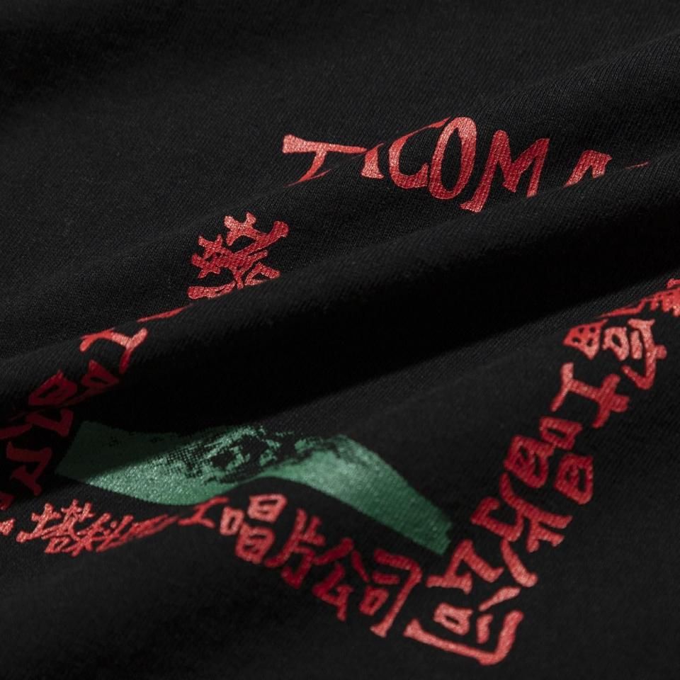 1960年代、カウンターカルチャーの中心地であったサンフランシスコで、ミュージックシーンの変節と成長の重要な役割を果たしたライブハウス「フィルモア」。フィルモア・オーデトリアムから始まり、フィルモア・ウェストとNYのフィルモア・イーストへと発展。数多くの名作と言われるライブ音源を収録したことでも有名だ。同時に、後進のアーティストに多大な影響を与えたのが膨大な数のライブ告知ポスター。モダニズムと幻覚体験を具現化したサイケデリック・アートの融合と呼ばれた革新的なアートポスターをイベント毎に作成、希望する来場者には無料で配布していた。現存する当時のポスターはコレクターの間では高値で取引されている。そんなコレクターの1人が元IRREPARABLE ACTSのヒロヒサヨコヤマ。このTシャツは、実際にフィルモア・イーストでライブ演奏した経験を持つヨコヤマが所持していた、1970前後にヨコヤマ自身がデザインした幻の未公開ポスターアート。「デザイン中の漢字の意味が分からない」との理由で当時採用されなかったが故に奇跡的な保存状態で発見、今回Tシャツ化されることとなった。