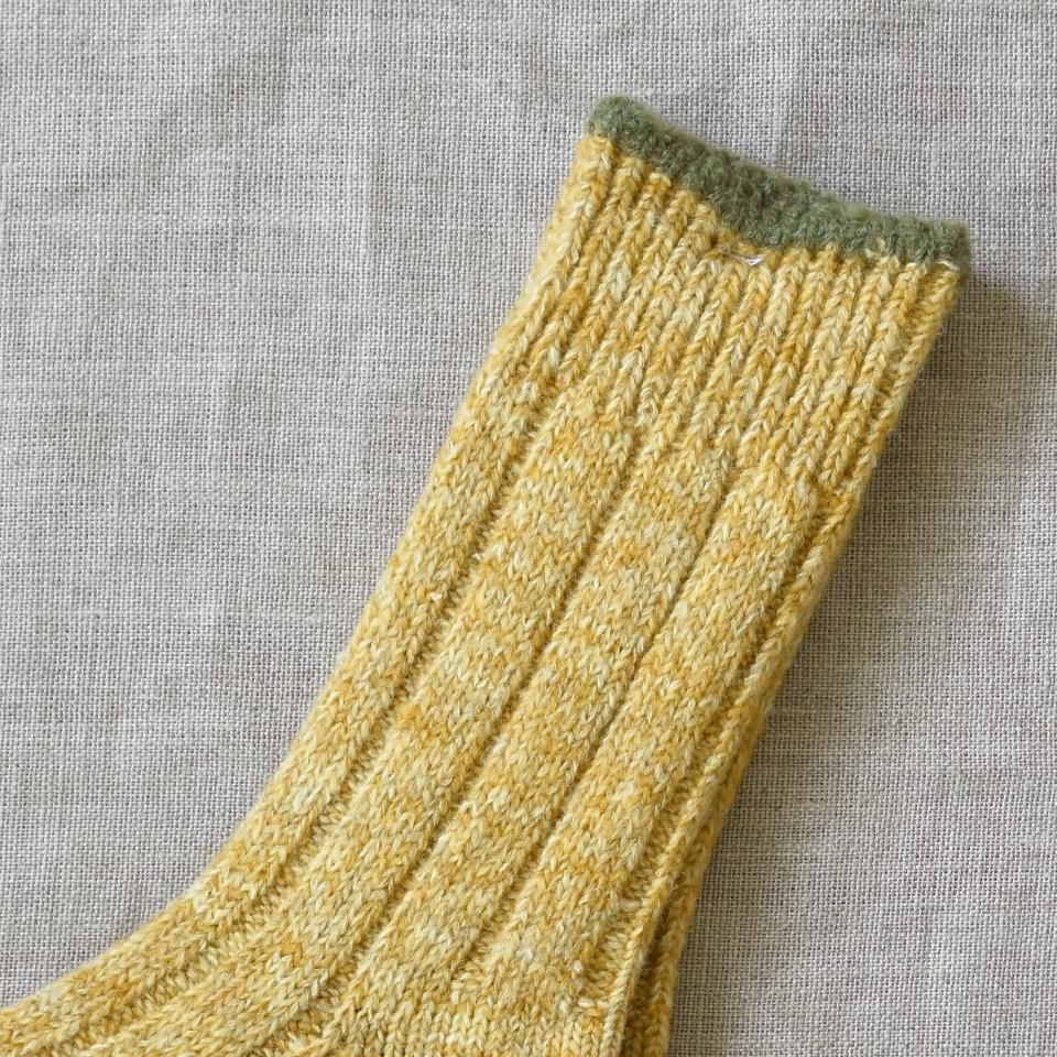 Mauna Kea(マウナケア)ウールトップつま先ラインソックス(23-25cm/女性向サイズ)イエロー