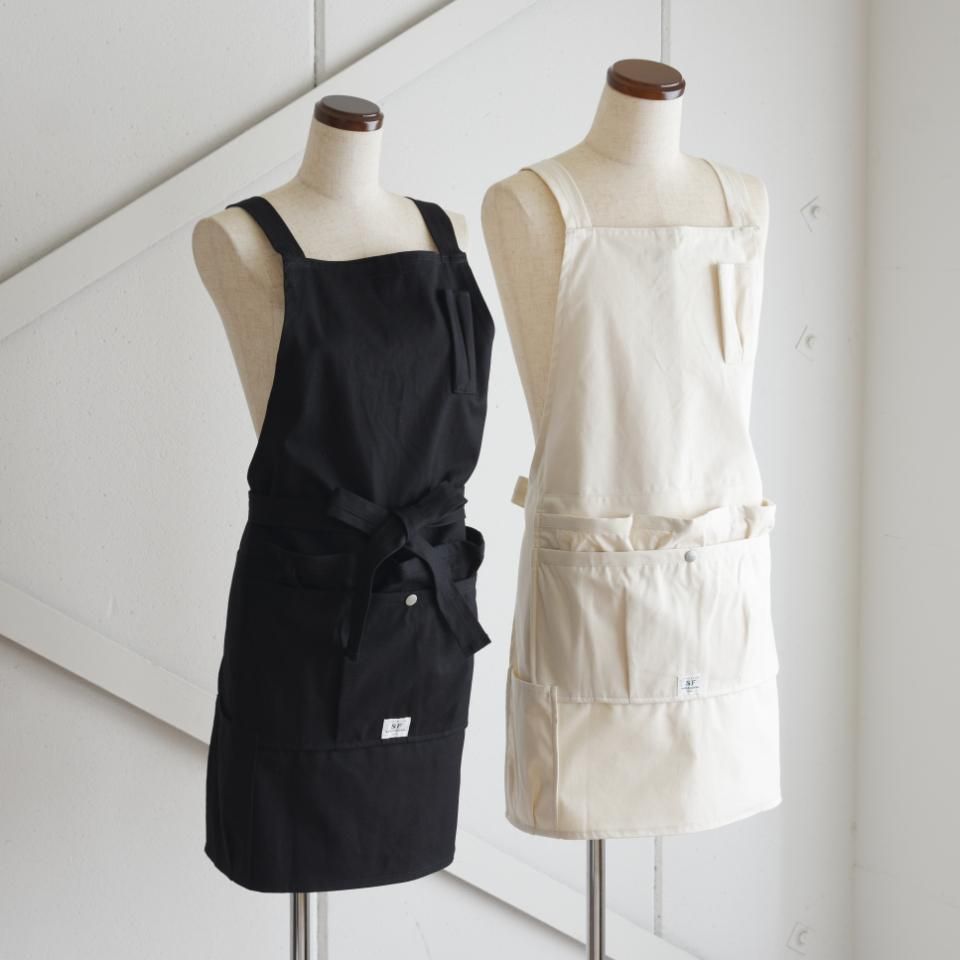 ガーデニングをベースに、ワーク・アウトドア・ミリタリーなどの機能を、独自の発想で詰め込んだエプロン。一見シンプルなエプロンながら、前面には大小さまざまな前後二重の大容量ポケットが配置され、ツールや道具を自在に収納できる設計。肩掛けタイプのバッククロスで取り付けるため、首への負担が少なく長時間の作業でも快適です。SASSAFRASらしいの哲学を体現する一着です。