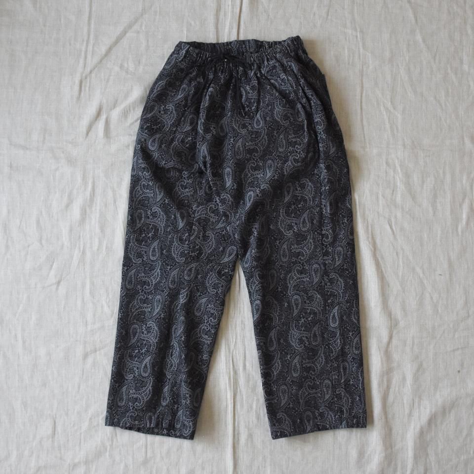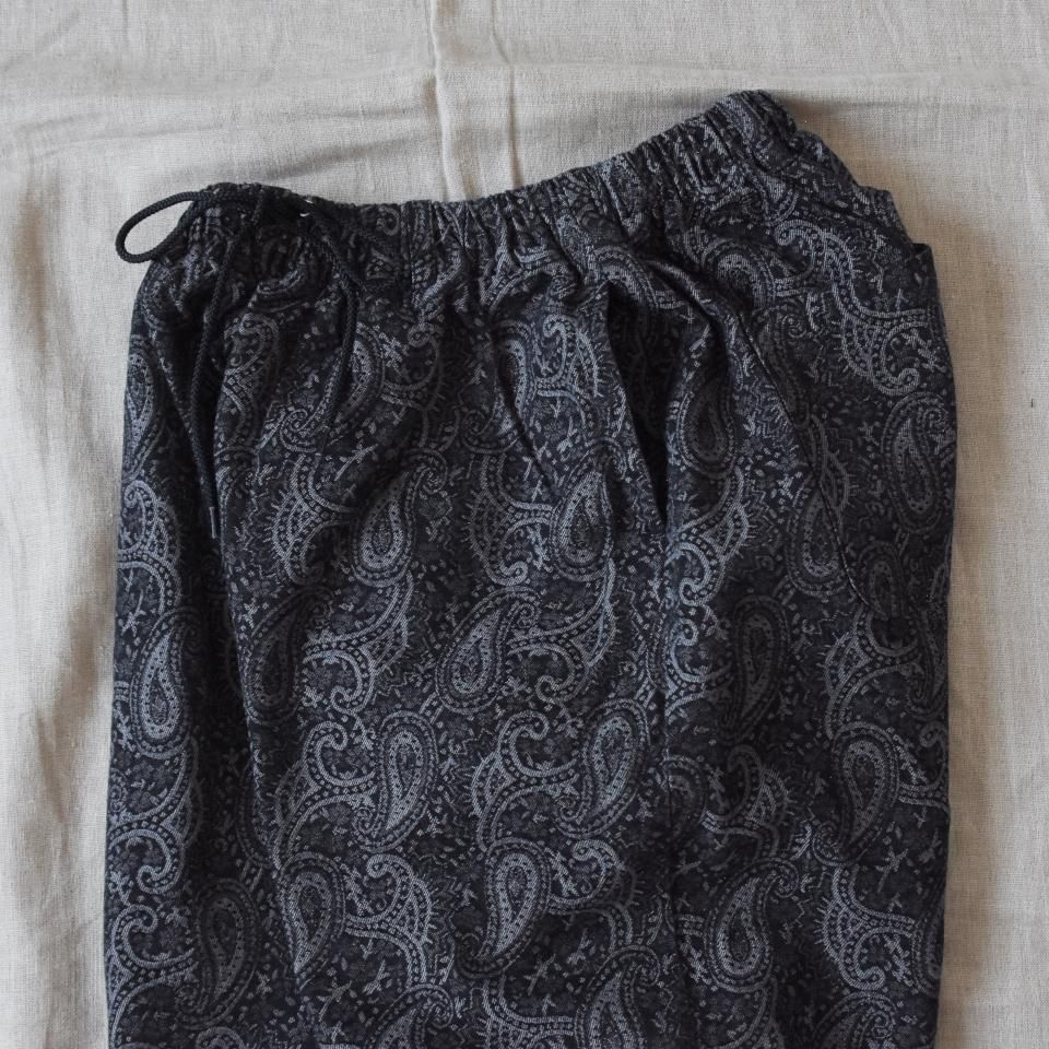昔から動きやすく履き心地の良い作業服としての「もんぺ」を現代のワークウェアとしてアップデート。多くの人に親しまれてきた「もんぺ」をゆったりとしたシルエットにテーパードデザインを加え、ウエストはゴムと紐で調整可能な仕様です。生地には、オリジナルのジャガード生地を使用し、カジュアル過ぎないデザインに仕上げているので、さまざまなコーディネートで活躍します。