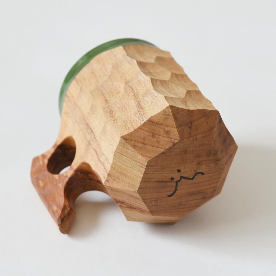 木工作家、アキヒロジンによる代表作ジンカップ。手に馴染むフォルムと木目の美しさが魅力。漆バージョン。