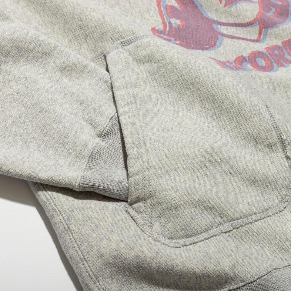 五木田智央デザイン。2025年AWコレクション裏起毛パーカー。シルクスクリーンプリント。肉厚であたたかな国産裏起毛ボディ。