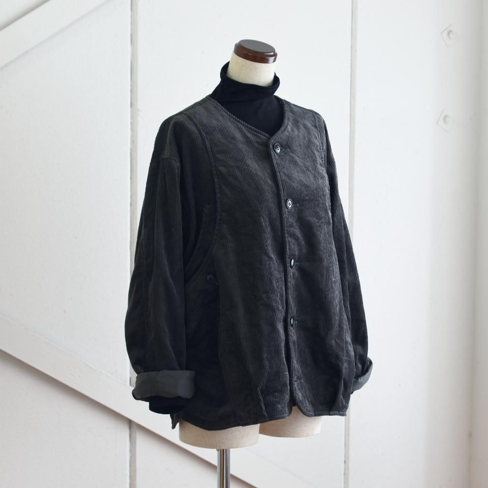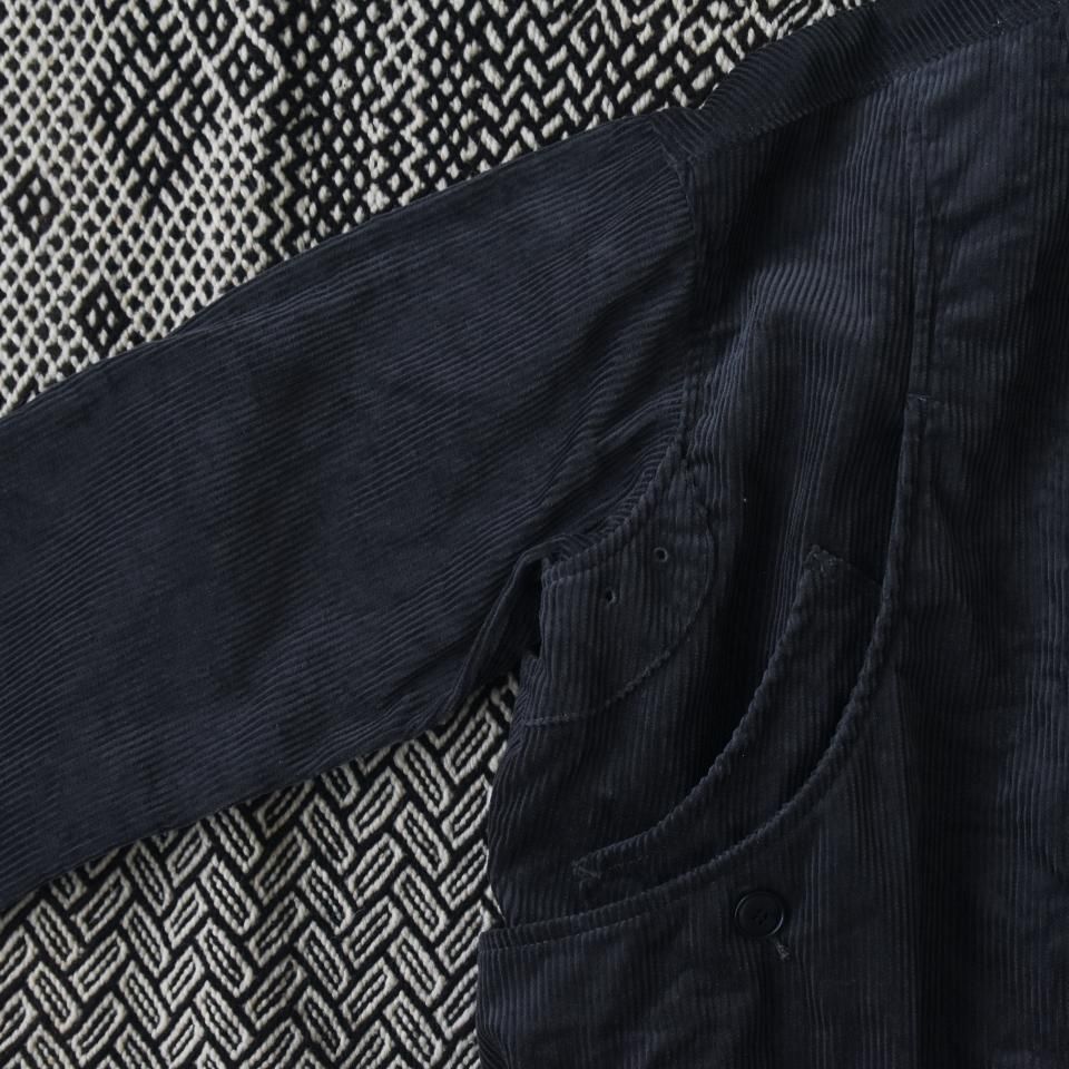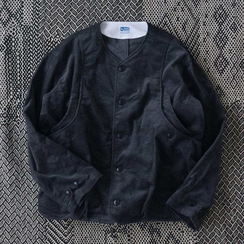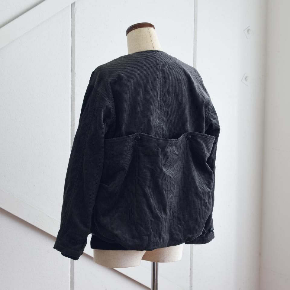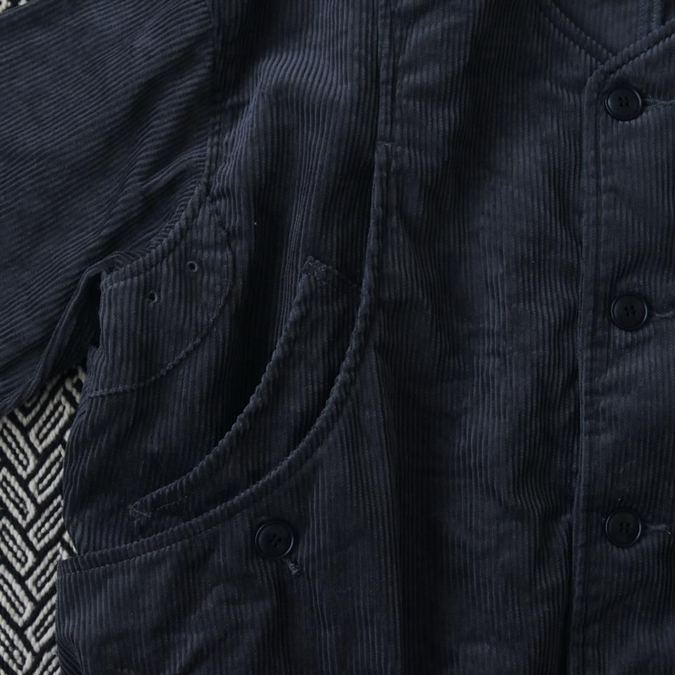前後のカンガルーポケットが特徴的なショートジャケット。経年変化によってヴィンテージ感が期待できる太畝コーデュロイ。