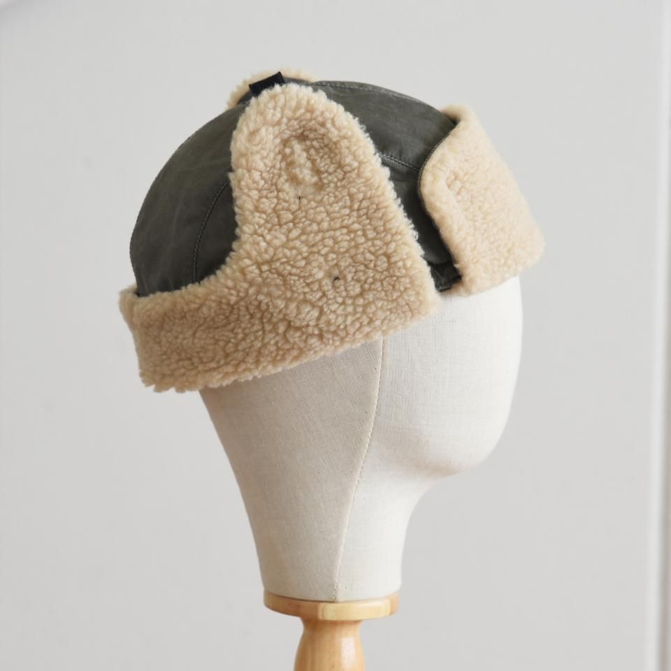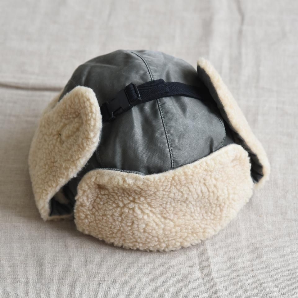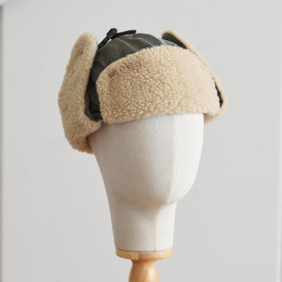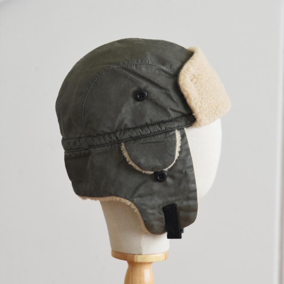 寒冷地仕様のブリザードキャップ。クラウンのトップに付いているアジャスターロック外すと、耳当て付きの帽子として着用することができます。MA-1をモチーフにした2重構造になっていて、MA-1に使われていたナイロンツイルの素材の上から顔料コーティングをすることで、ヴィンテージ感のあるナイロン素材を再現された生地を使用しています。ナイロン素材ながら洗いこむごとに色落ちしていき、経年変化も楽しめます。