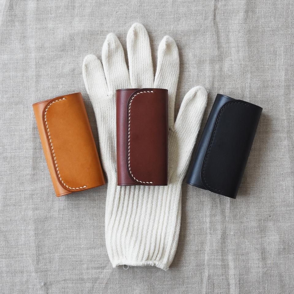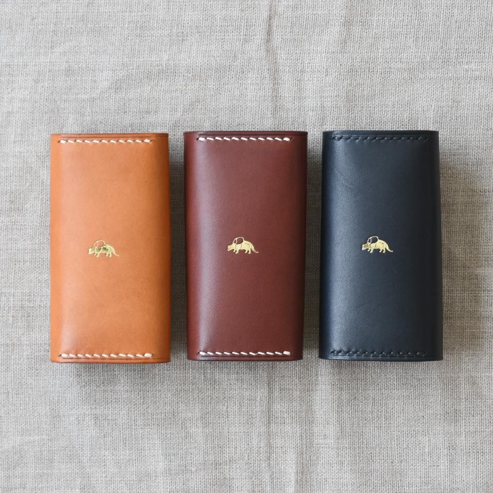 三つ折り財布のようなデザインが特徴のベーシックな4連キーケース。自然な手触りで美しい経年変化が期待できるレザー。