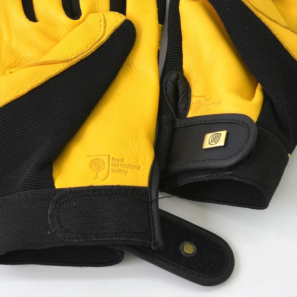 一般的にガーデニング用のレザーグローブは硬いものが多いのですが、ゴールドリーフは滑らかで柔らかく、かつ丈夫なグローブとして、イギリスの園芸家に絶大な信頼を得ています。ソフトタッチ(The Soft Touch)グローブは、伸縮通気性のある特殊素材スパンデックスを使用しており、手首のベルクロ(マジックテープ)で指先から手首までフィット感が抜群。引っ掻きなどによる耐久性にも優れていて安心です。柔らかく丈夫な高品質の革を使用しているので、指の曲げ伸ばしがしやすく作業性も抜群のグローブです。