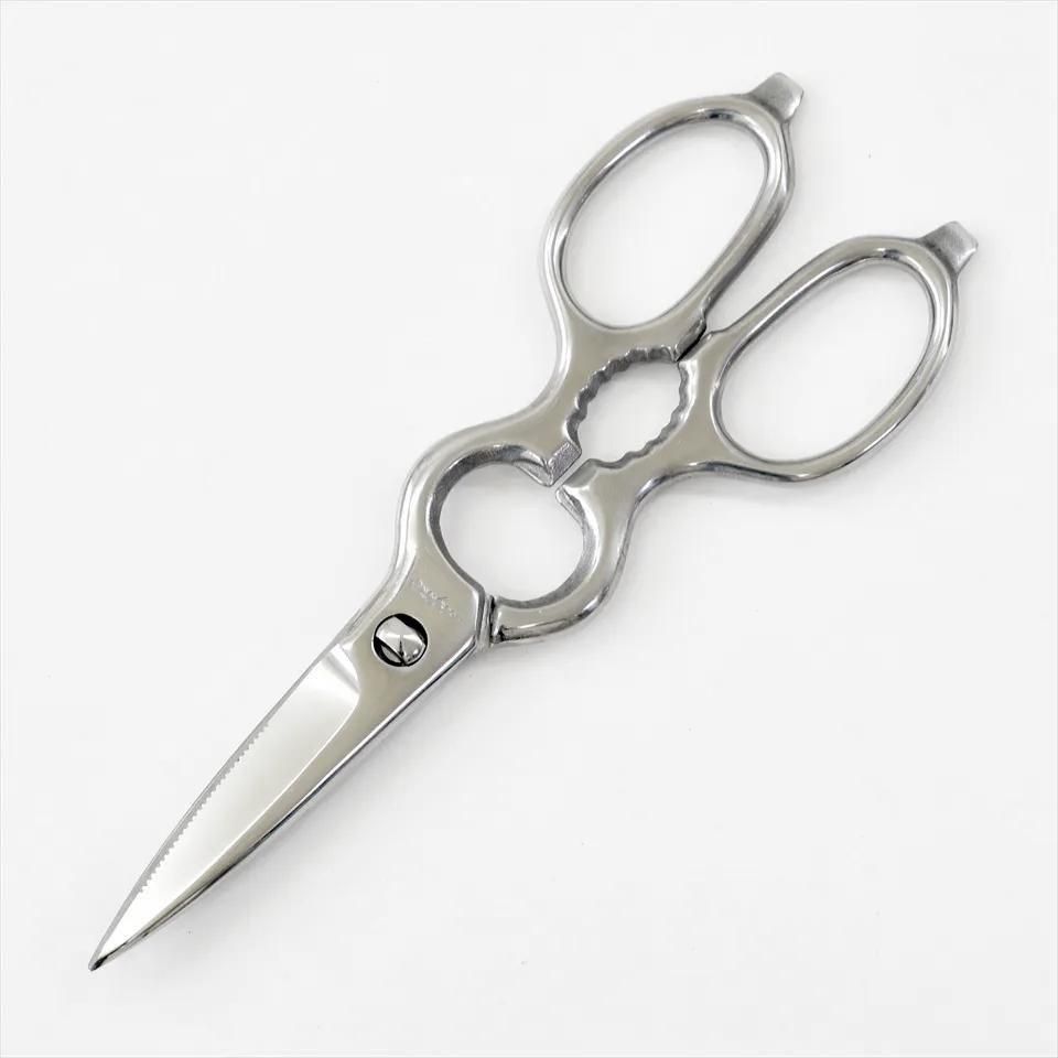 錆びにくいステンレスのキッチン鋏。刃を開ききった状態で外して水洗いができ衛生的。ギフトで人気。