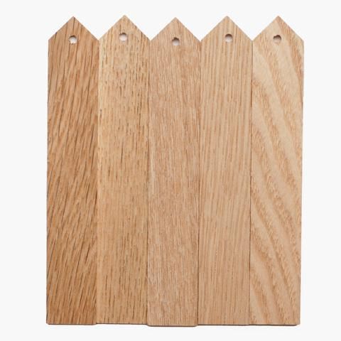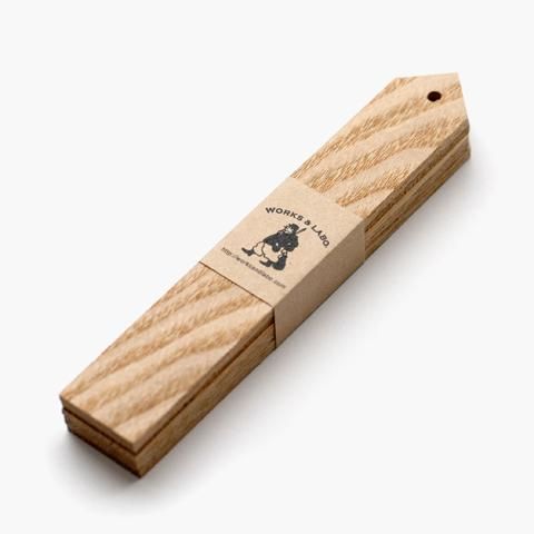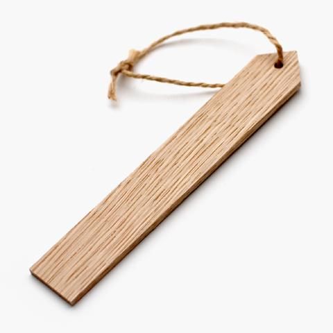 プラスチック製のネームラベルは腐らないが、雰囲気が出ず、何より不燃ゴミになる。それなら、やはり木製は雰囲気があって良いし、どうせなら今の時代いずれ朽ちて土に還るほうを選びたいものです。若手家具職人の協力のもと、高級家具製作に使われているナラ(ジャパニーズ・オーク)とタモ(ジャパニーズ・アッシュ)を使用。いずれも硬質で変形しにくい材質で、木肌も抜群の風合いです。麻ひもなどで木の枝に吊り下げられるよう穴が開いています。