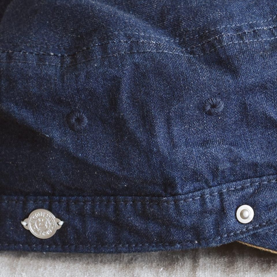 ポーターやサービスマンが被っている帽子をモチーフにデザインされていて、どんなコーディネイトにもマッチする万能なシルエットです。10オンスネップペインターデニムを使用。経糸はインディゴロープ染色を用いて染めています。通常のデニムタイプより薄めの色感で汚れが目立ちにくいのが特長。後部のフックでサイズ調整が可能です。革フックは取り外して洗濯することができます。
