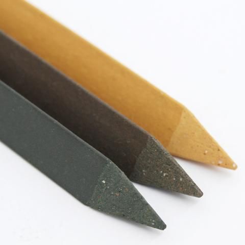 屋根瓦「三州瓦」の配合粘土を販売する株式会社丸長との共同開発で制作している、瓦製のプランツラベル。三角柱の棒状にすることでプレートより強度が増し、植物の名前のほか、日付、管理方法なども書き込めます。また、球根や種まき後の目印として、紐をくくって杭(くい)として使ったり、アイデア次第で用途は広がります。