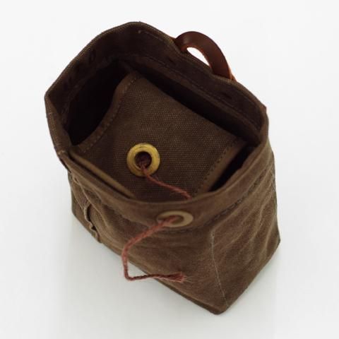岡山のバッグ・エプロンブランドUTO(ユート)との共同制作。UTOの素材やもの作りに対する想いと、WORKS & LABO.の園芸リサーチから生まれた実用性への探究心が共鳴し製品化された麻ひも専用バッグ。タンニン染めや硫化染めを施したキャンバス生地、縫製、メッキではなく経年変色した無垢の真鍮パーツを使う拘り様。仕様は英国ナッツシーンの麻ひもスプール120mをセットし上蓋のハトメもしくは前面のハトメから紐を引き出すことで、麻ひもの形状が崩れず絡まりません。内ポケットも付いて、上蓋を収納すればウエストバッグとしても使えます。内側サイドにはペンやピンセット、プランツラベルが収納できるポケット付き。麻ひも専用バッグとして生まれた製品ですが、農園芸以外の作業でもご自身の作業に合わせアレンジして使ってみてください。