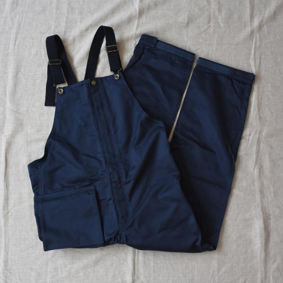 サスペンダーテープを腰に巻き、胸当てを前に倒してパンツスタイルとしても着用できます。取り外し式のツールポケット付き。膝は2重での補強と、アクションプリーツ、裾はベルクロで調節し絞ることによって動き易さをプラス。胸当て内側両サイドにハンドウォームポケットも付いています。
