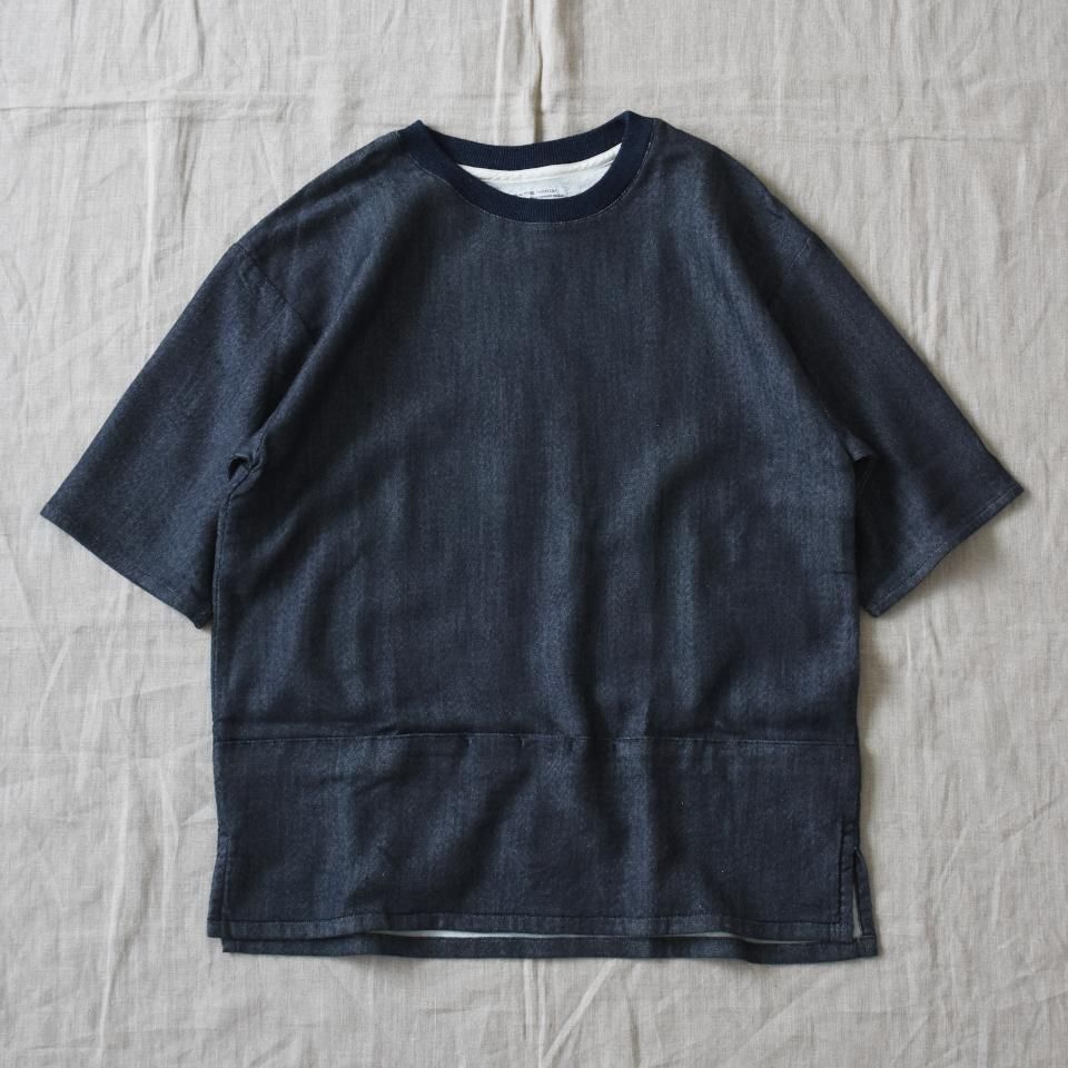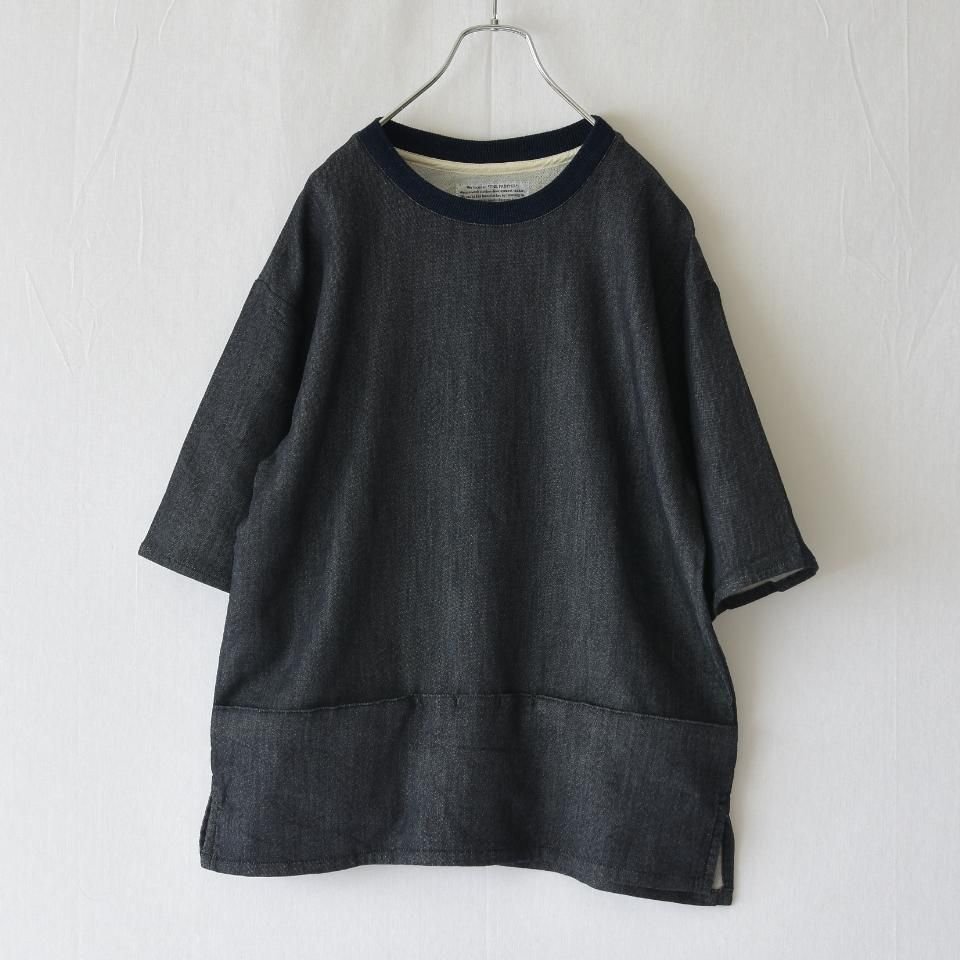 【残りサイズ2のみ】59 rivoliのsquaterをモデルに制作されたシリーズ。やや長めの袖の半袖シャツ。表デニム裏スウェット。