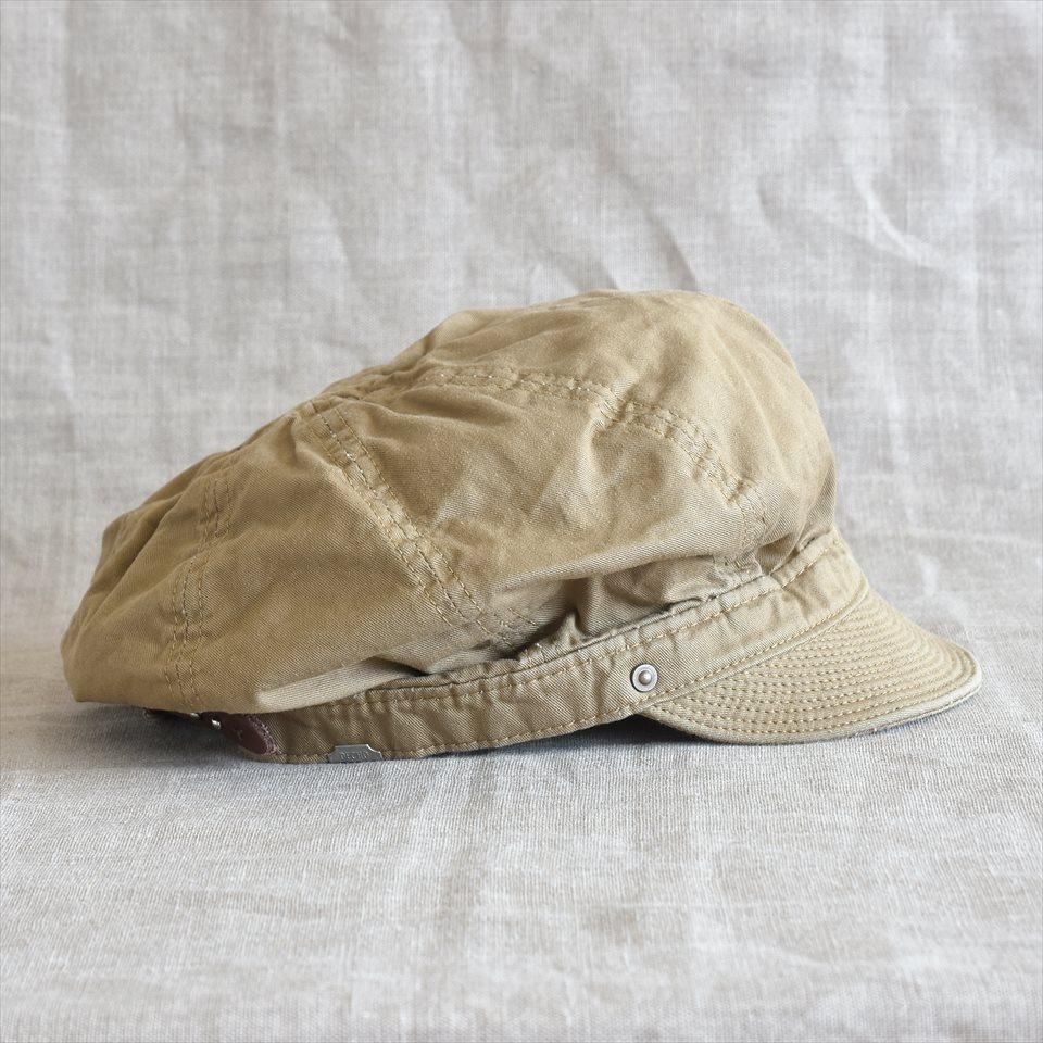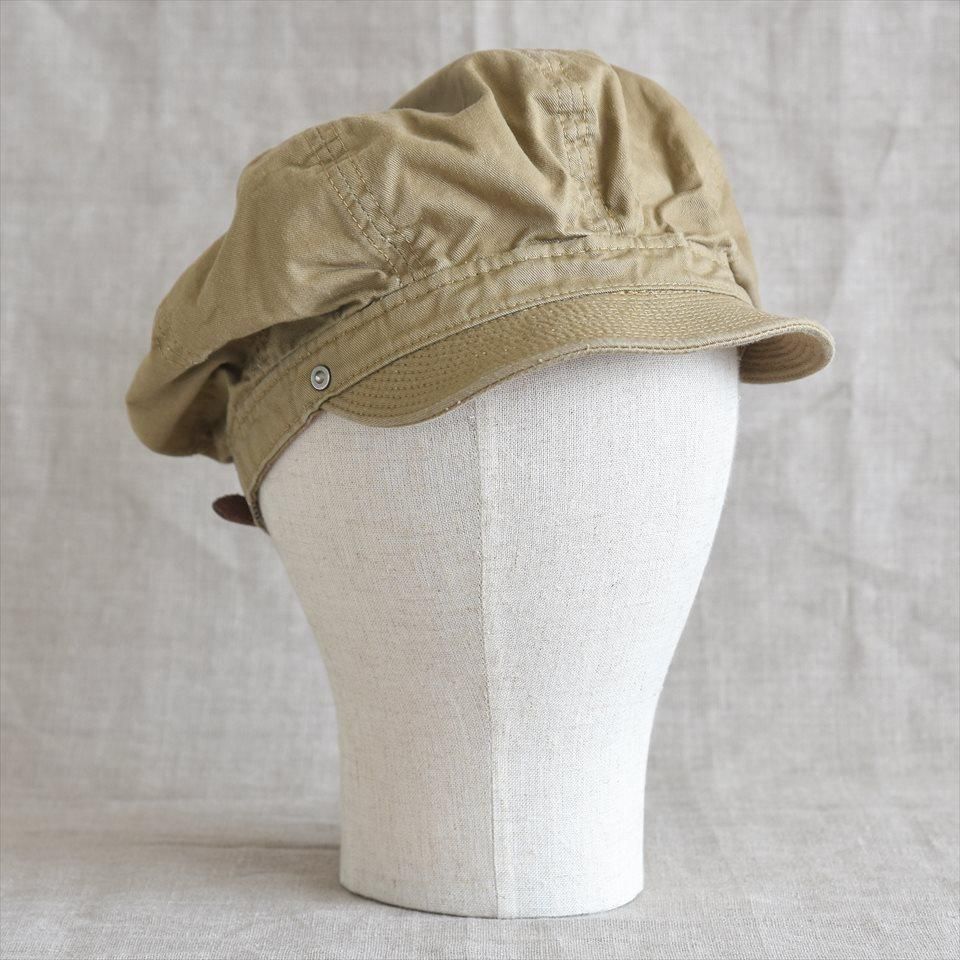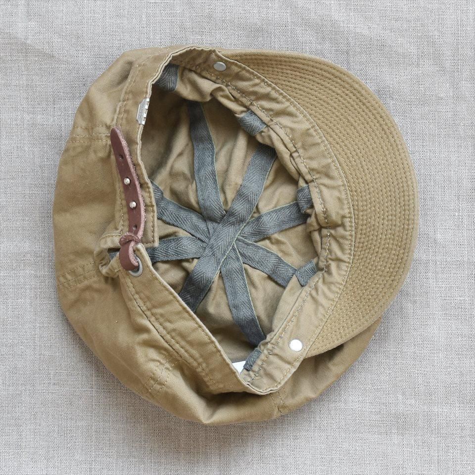 ふっくらとした溜まりの部分を前や後ろに倒したりと、被り方のバリエーションが豊富です。旧力織機で織った昔ながらのチノ素材。硬仕上げを施し、ハリコシのある生地に仕上がっています。洗い込むことにより、色落ち、風合いが増します。後部のフックでサイズ調整が可能です。革フックは取り外して洗濯することができます。
